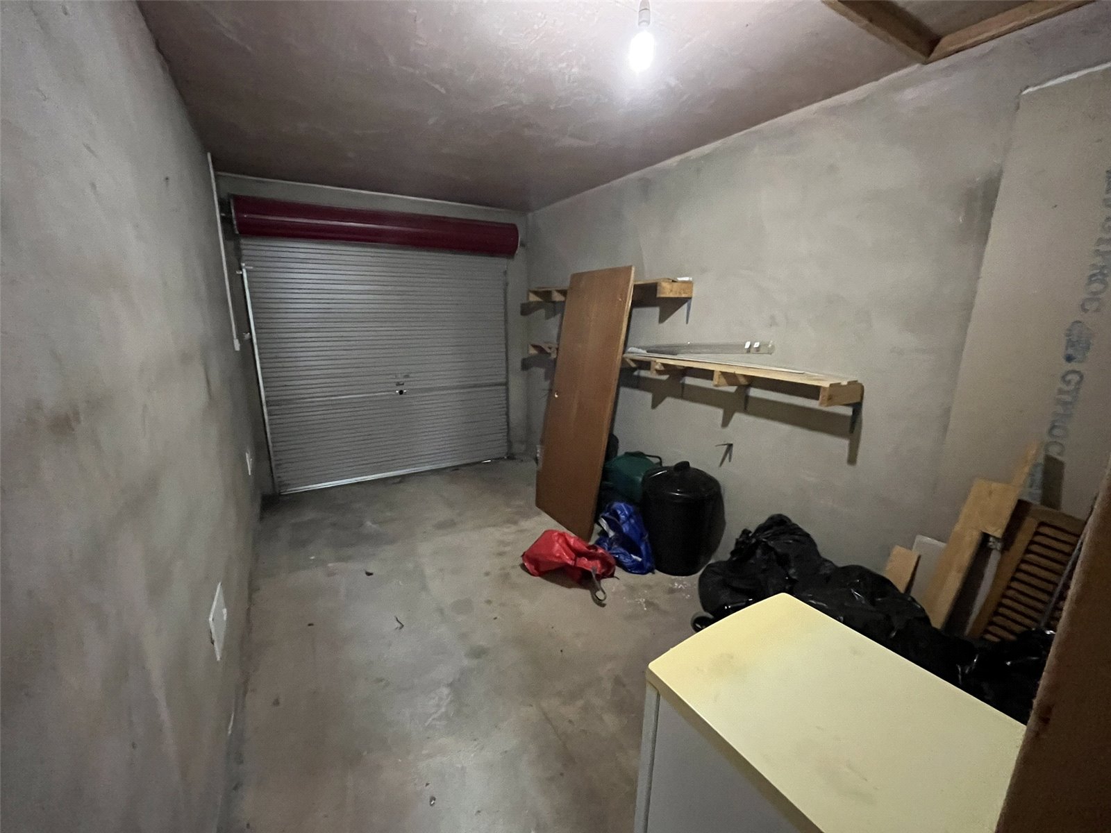 Sizeable single garage space, comprising of loft access, roller shutter door, lighting and power connections.