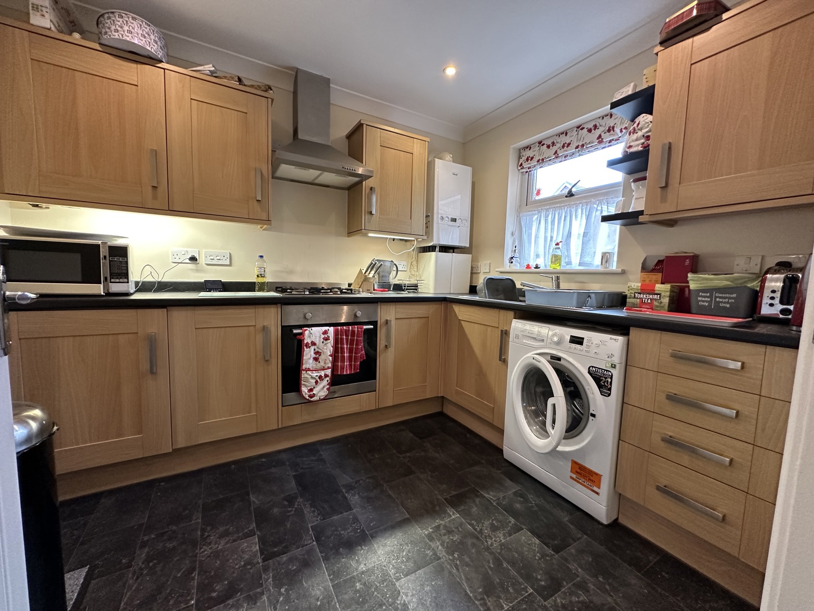 Vinyl Flooring, Wall & Base Mounted Units, Sink, Integrated Fridge, Oven, Hob, Extractor, Window