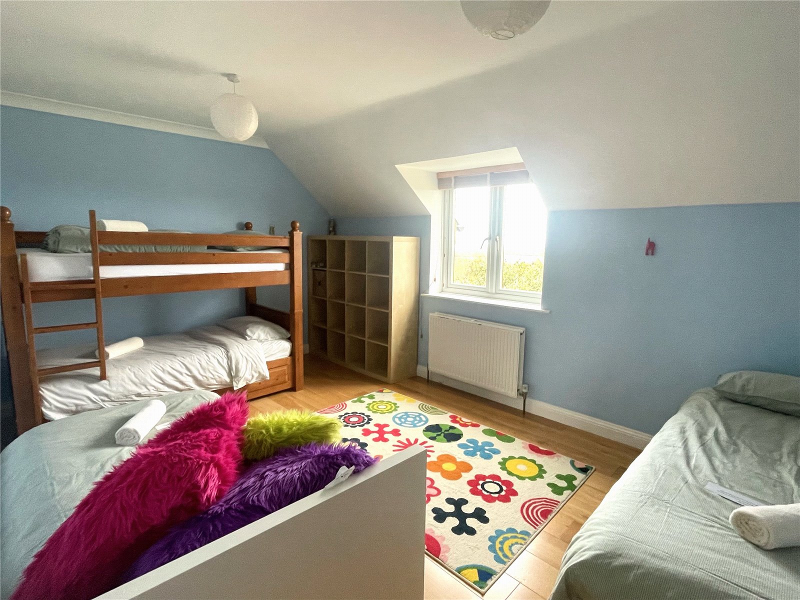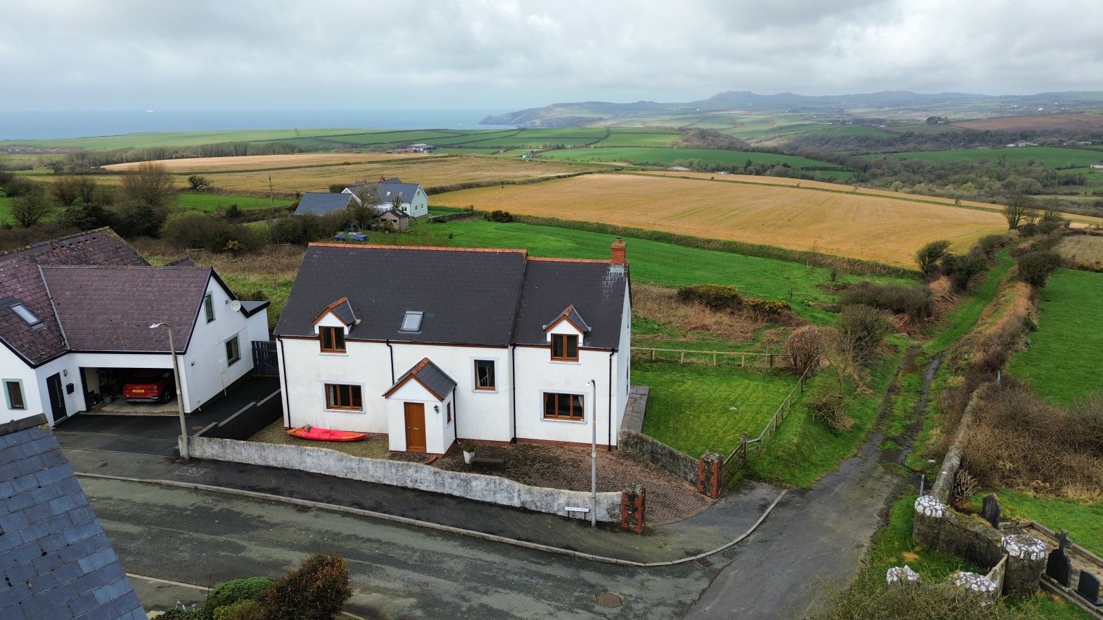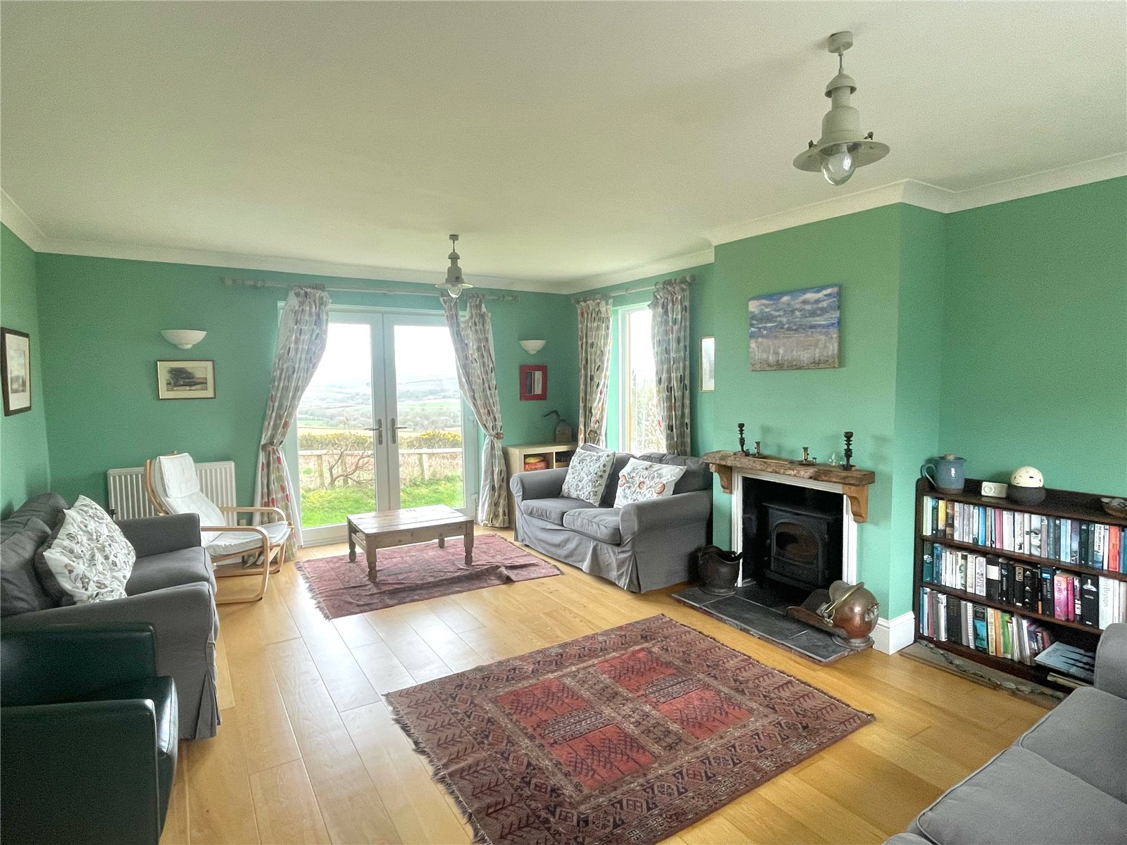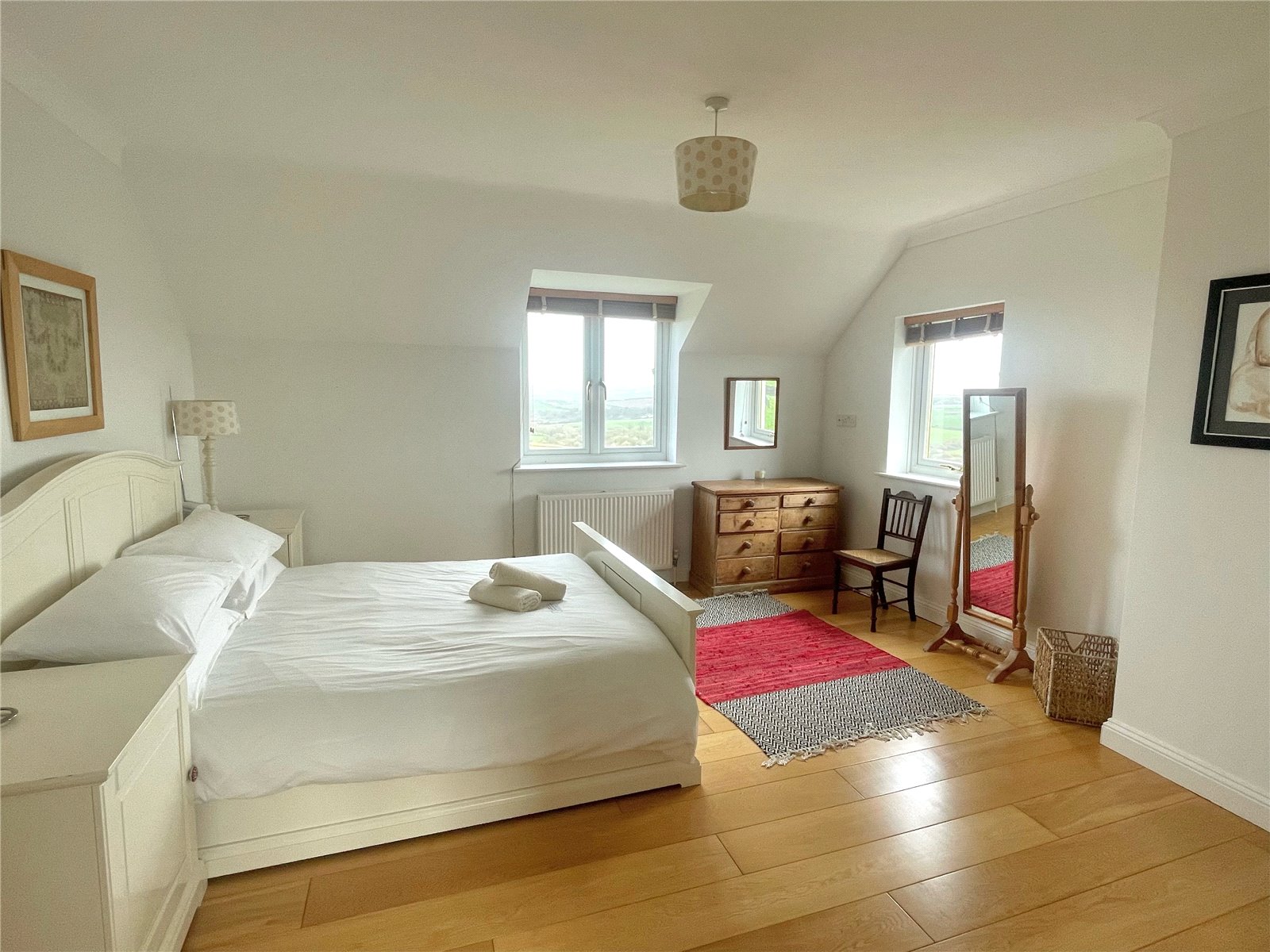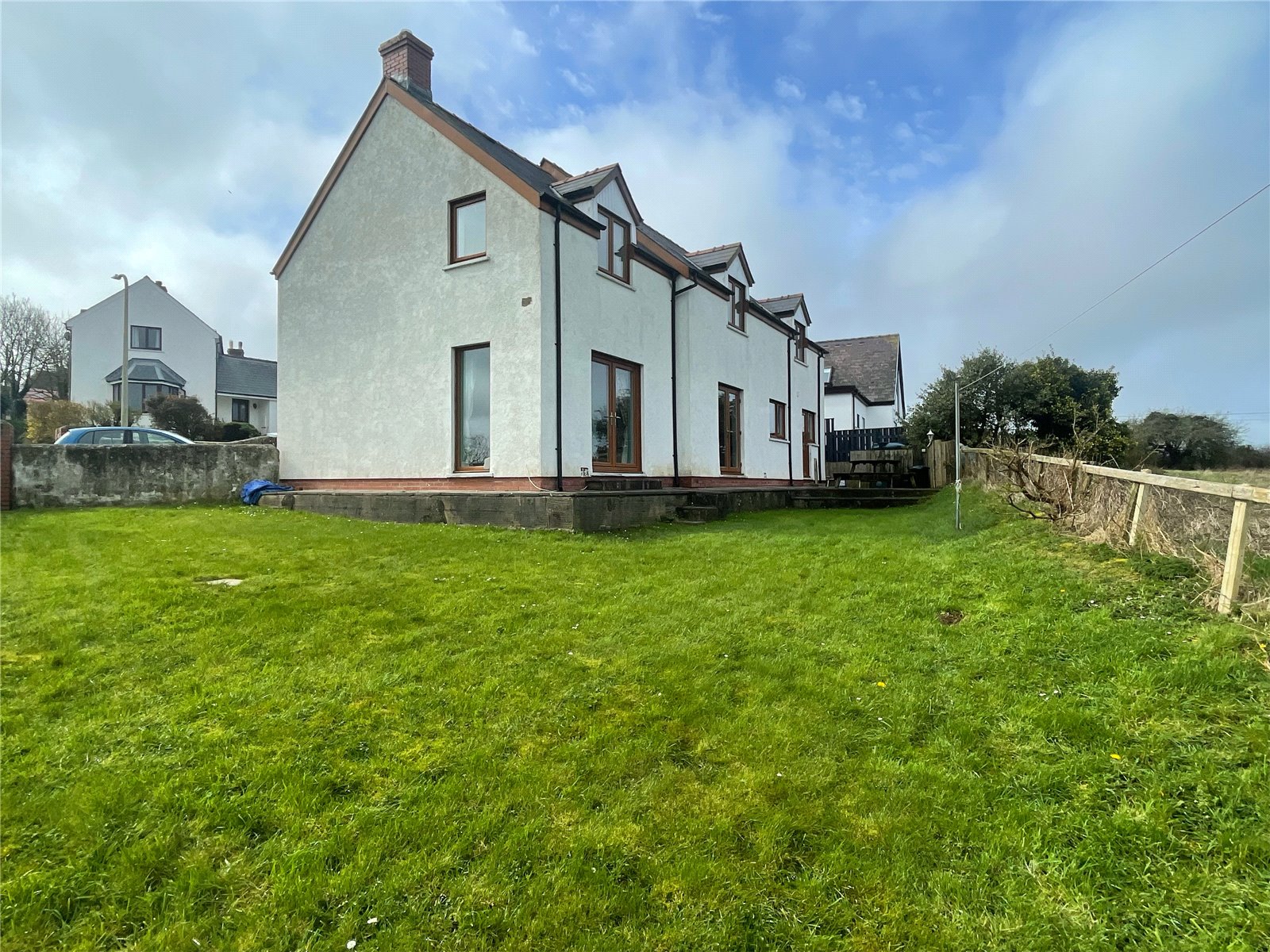 To the rear is a patio area, perfect for a table and chairs. The patio continues around the entire back of the property, leading back to the front. Down some steps there is a garden area laid to lawn. There are spectacular views of the countryside and coast from the rear and side of the property.