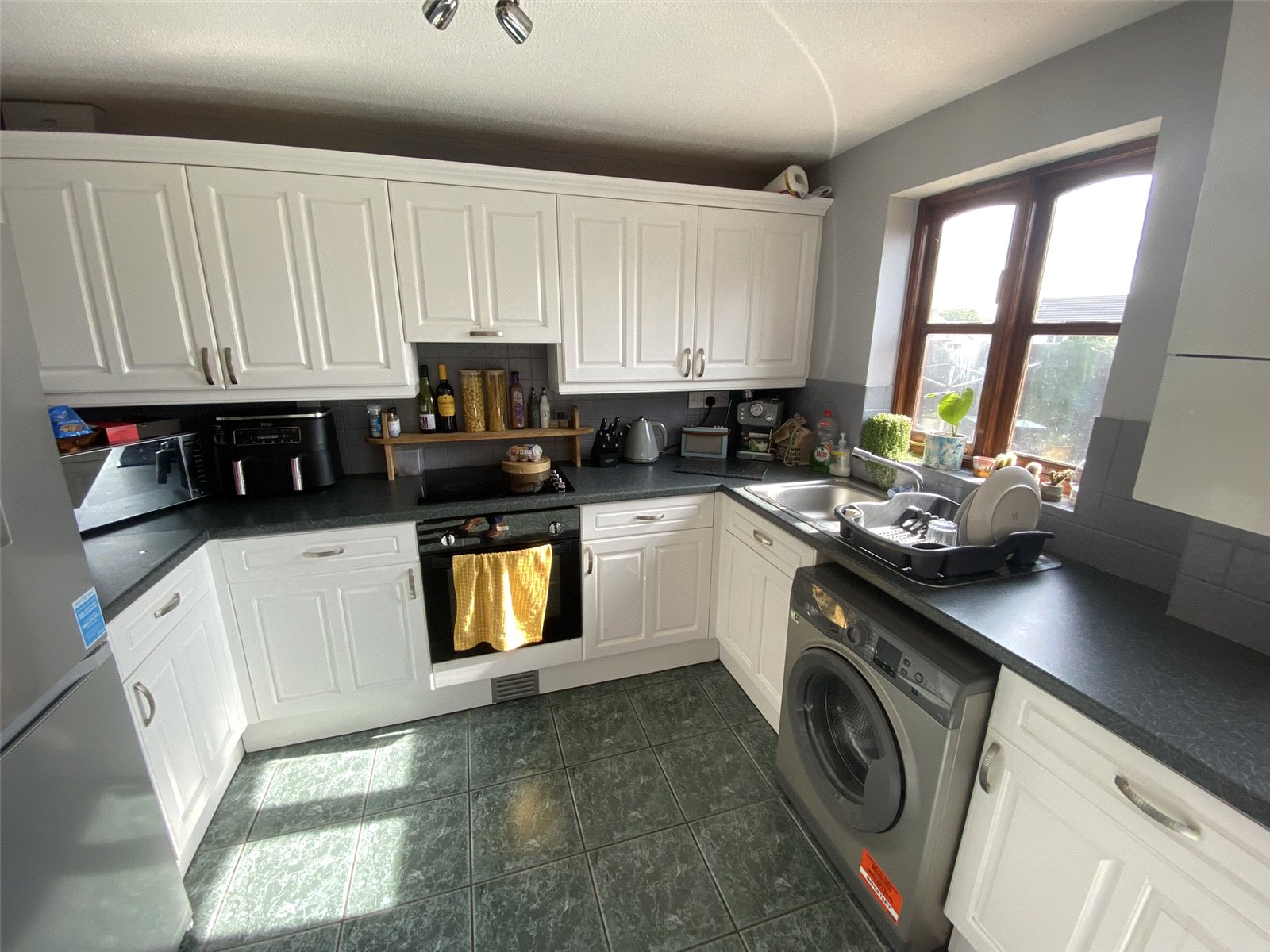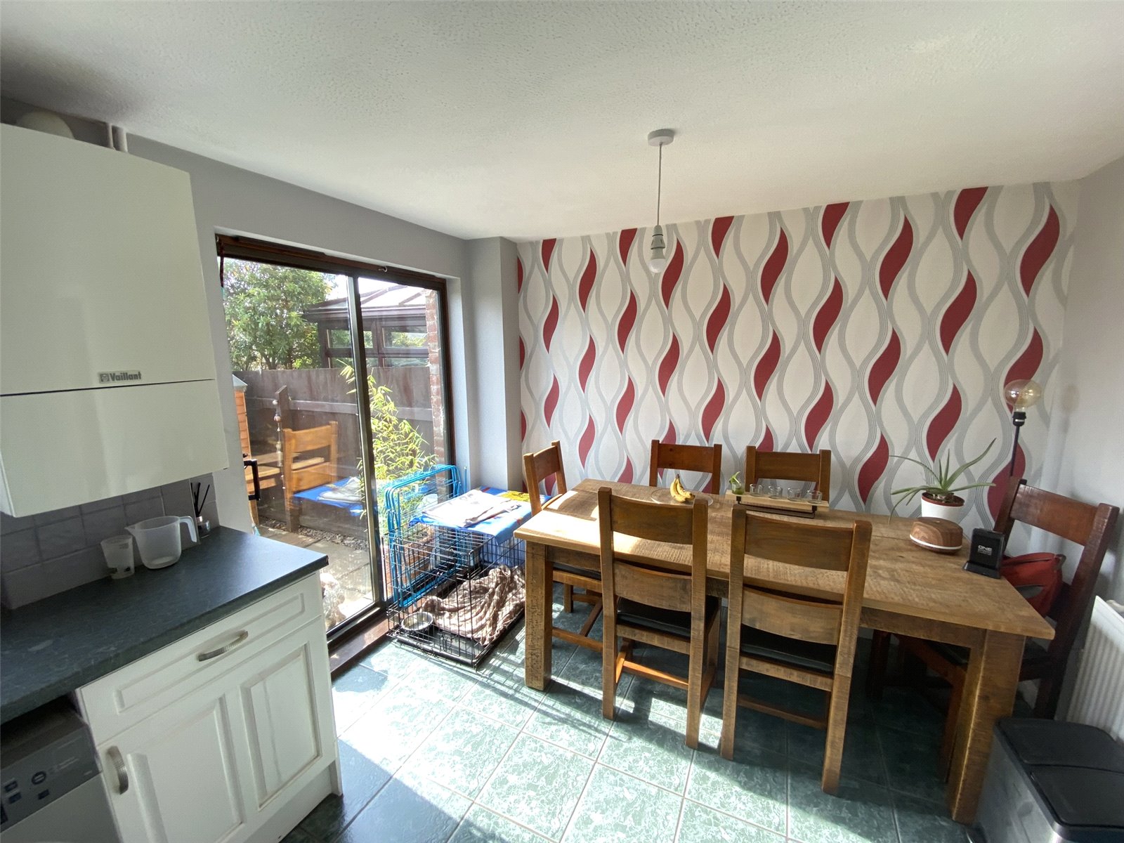 Wooden double glazed window to rear, sliding double glazed doors to rear, wall mounted Vaillant gas boiler, tiled flooring, electric oven and hobs with extractor hood over, plumbing for automatic washing machine, single drainer sink unit, space for fridge/freezer, fitted with a matching range of wall and base units, worktop space, tiled splash backs, radiator.