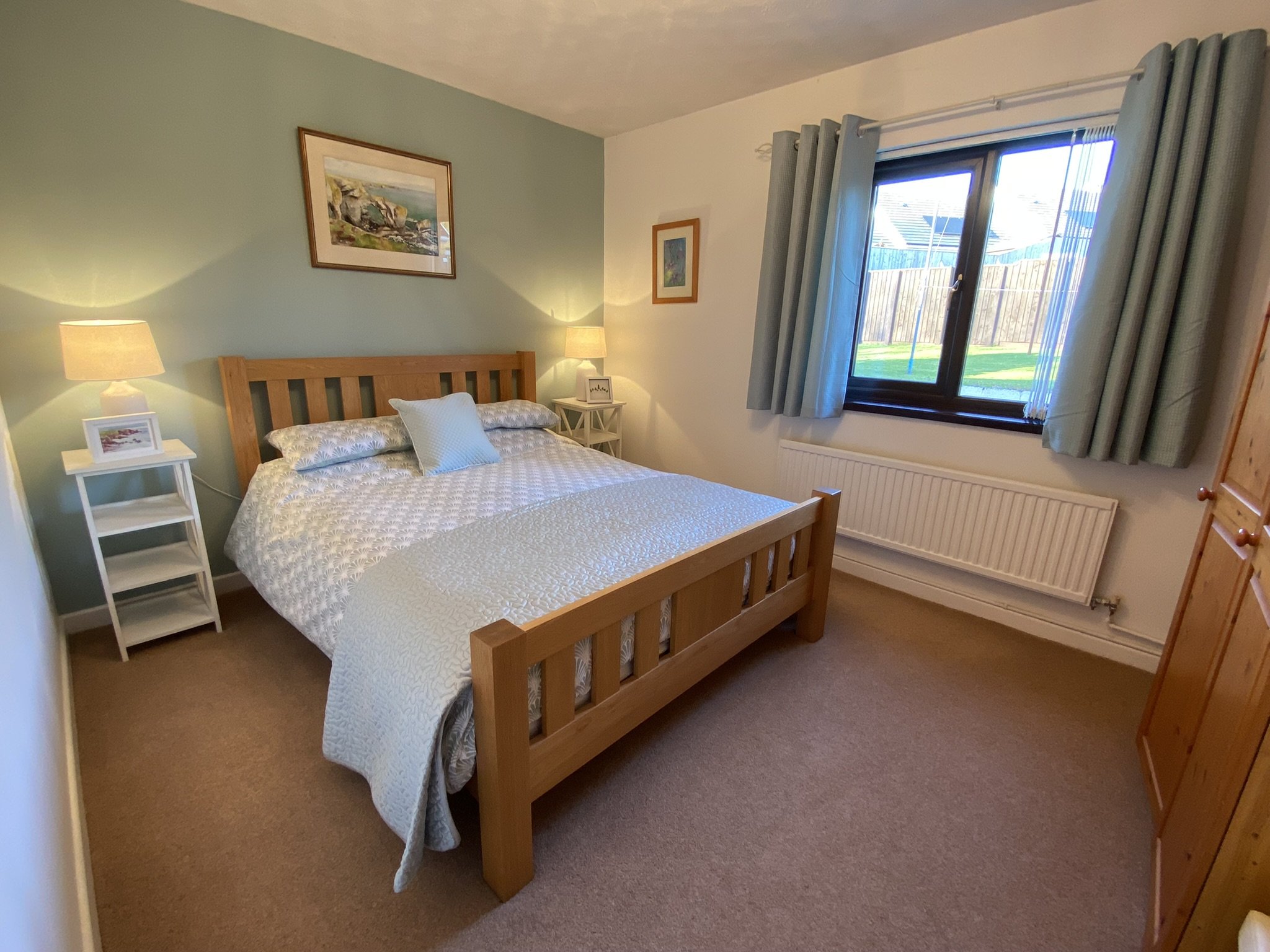 This room is the Master Bedroom which benefits sea views from the bed and overlooking the Garden. This lovely sized room is carpeted and has a large recess where the freestanding wardrobes stand.