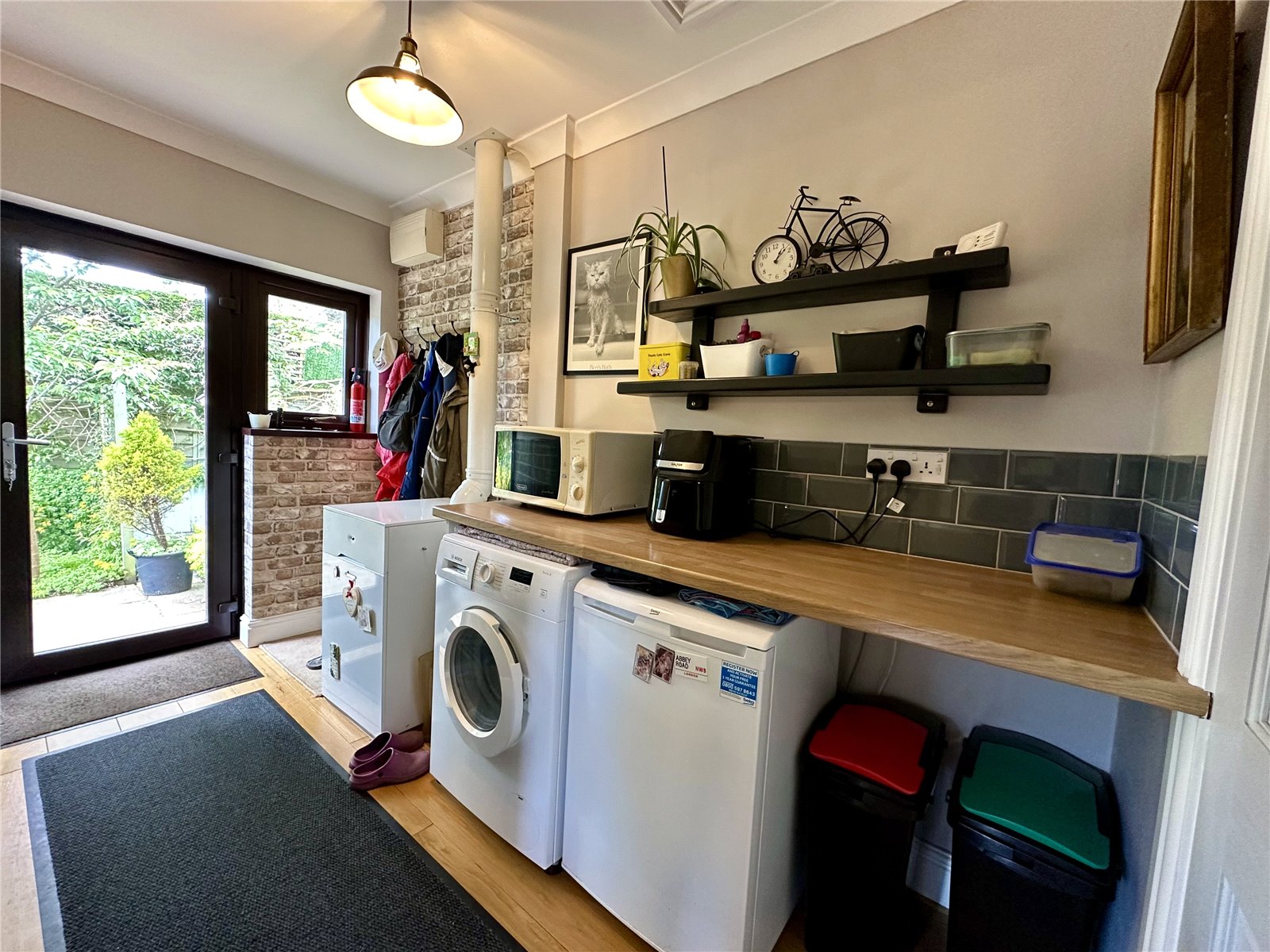 uPVC obscure double glazed door to side, uPVC obscure window to side, boiler, space for washing machine and dryer, oak flooring.