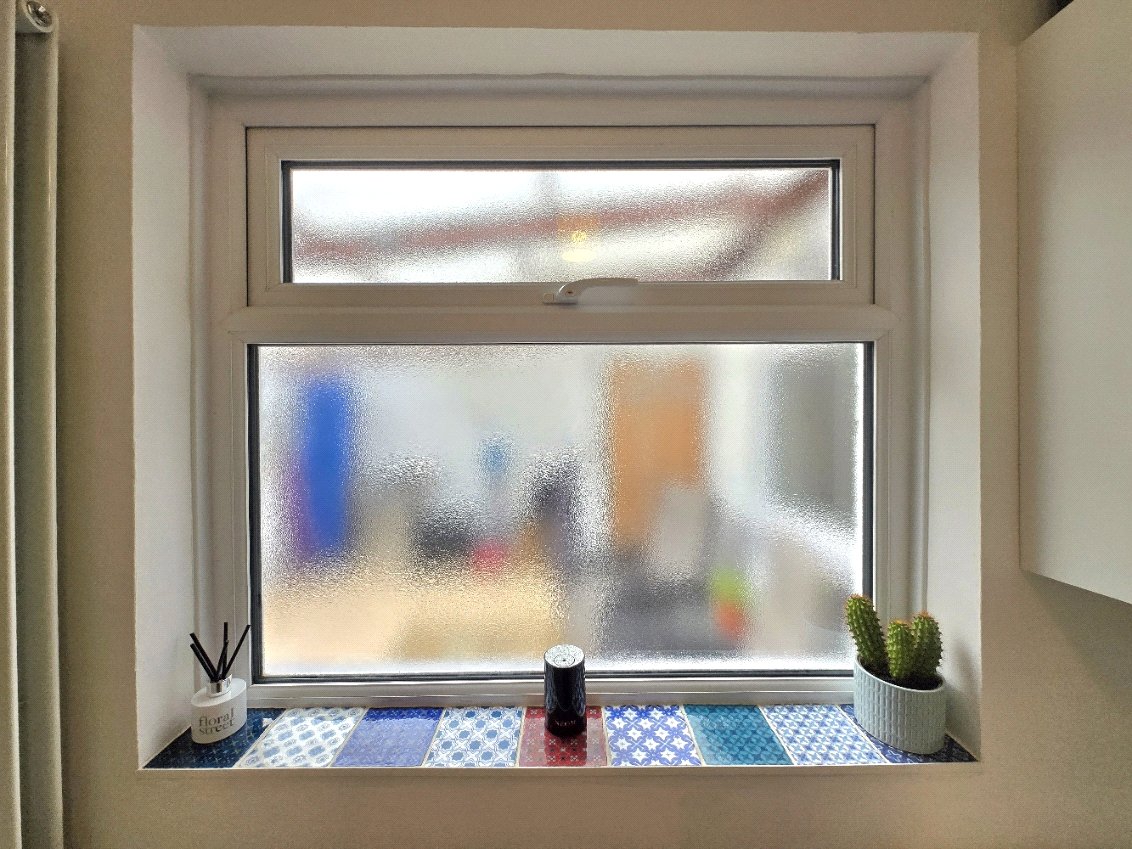 Wooden flooring, obscure glass uPVC double glazed window to the fore, radiator, light fitting.