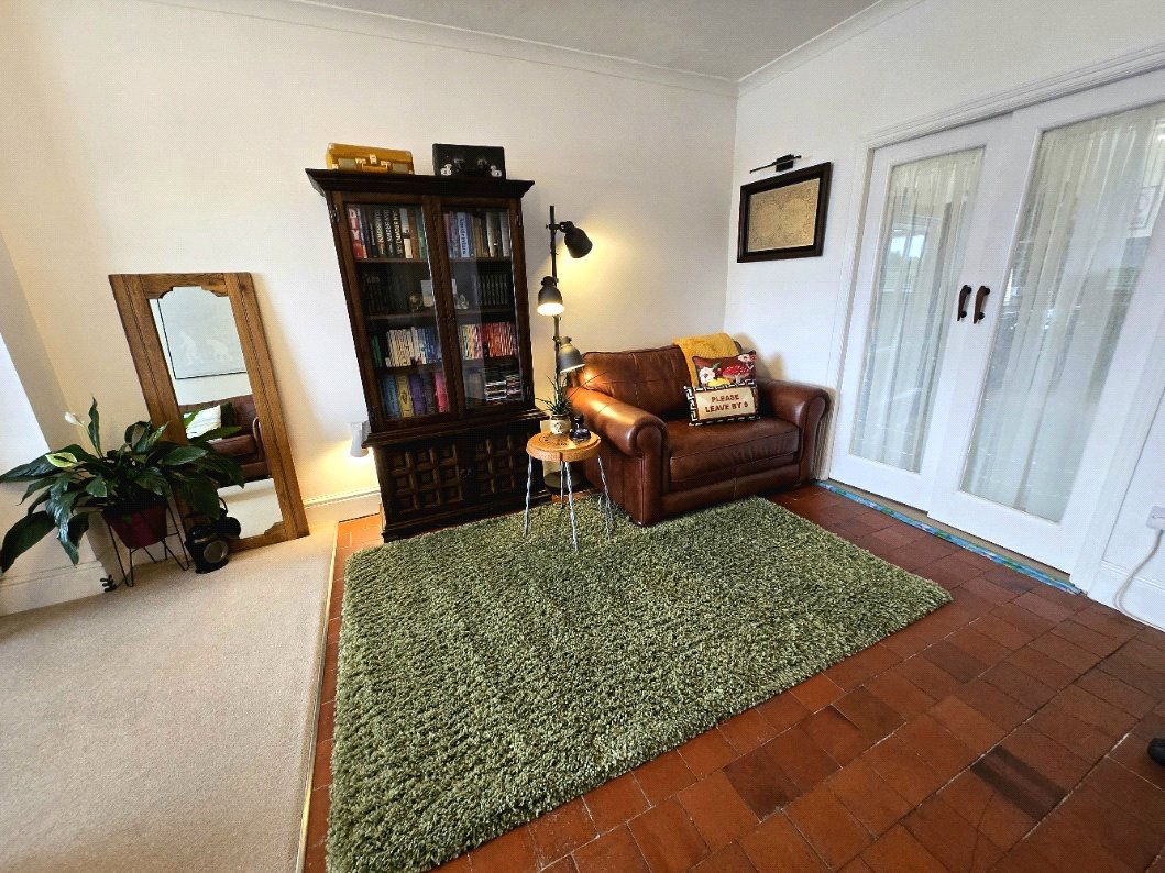 Part carpet part quarry tile flooring, uPVC double glazed window to the fore, radiator, light fitting, double doors leading to: