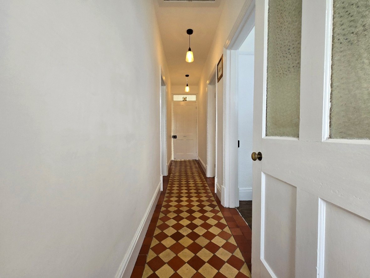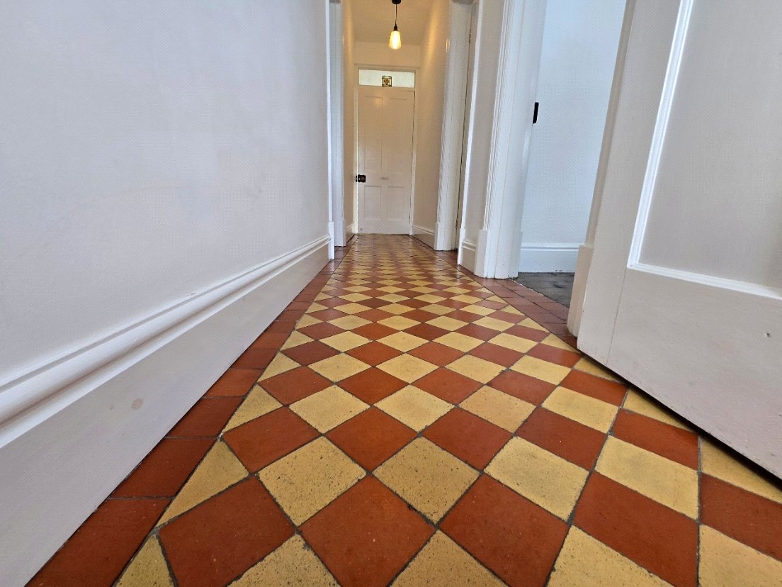 uPVC front door, quarry tile checkered floor, light fittings.