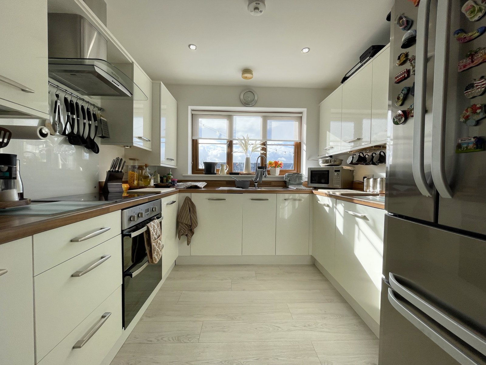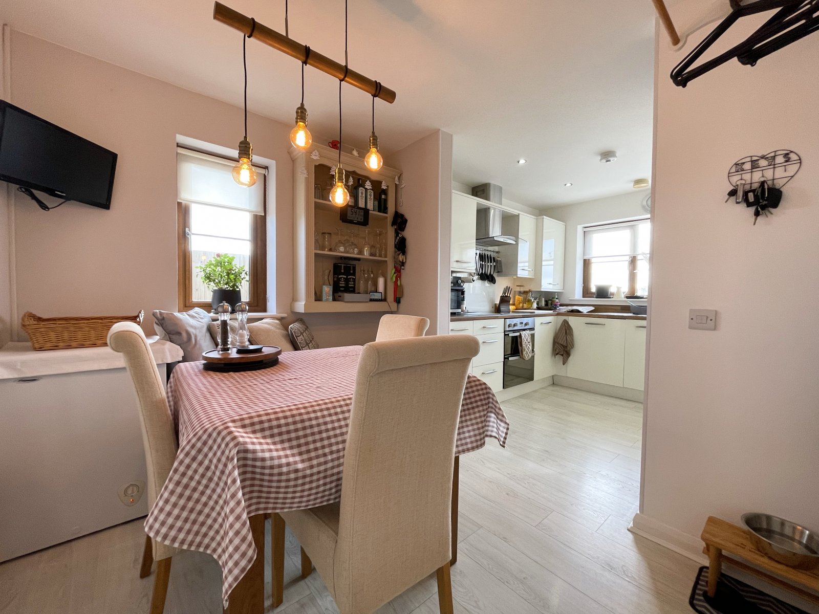 uPVC double glazed windows to side and rear, range of wall and base kitchen units, Amtico flooring, part tiled walls, fitted electric oven with electric hob, mixer tap sink and drainer, integrated dishwasher and washing machine, wall mounted radiator, Worcester gas combi boiler.