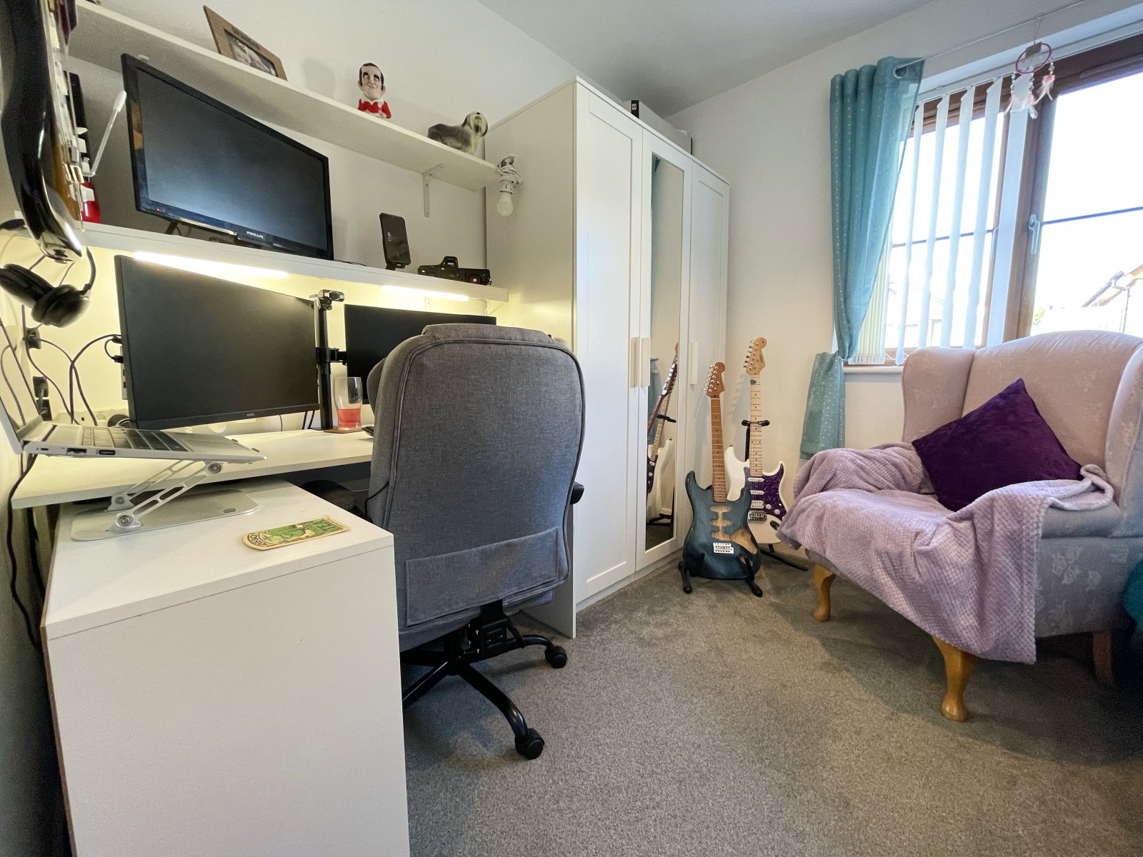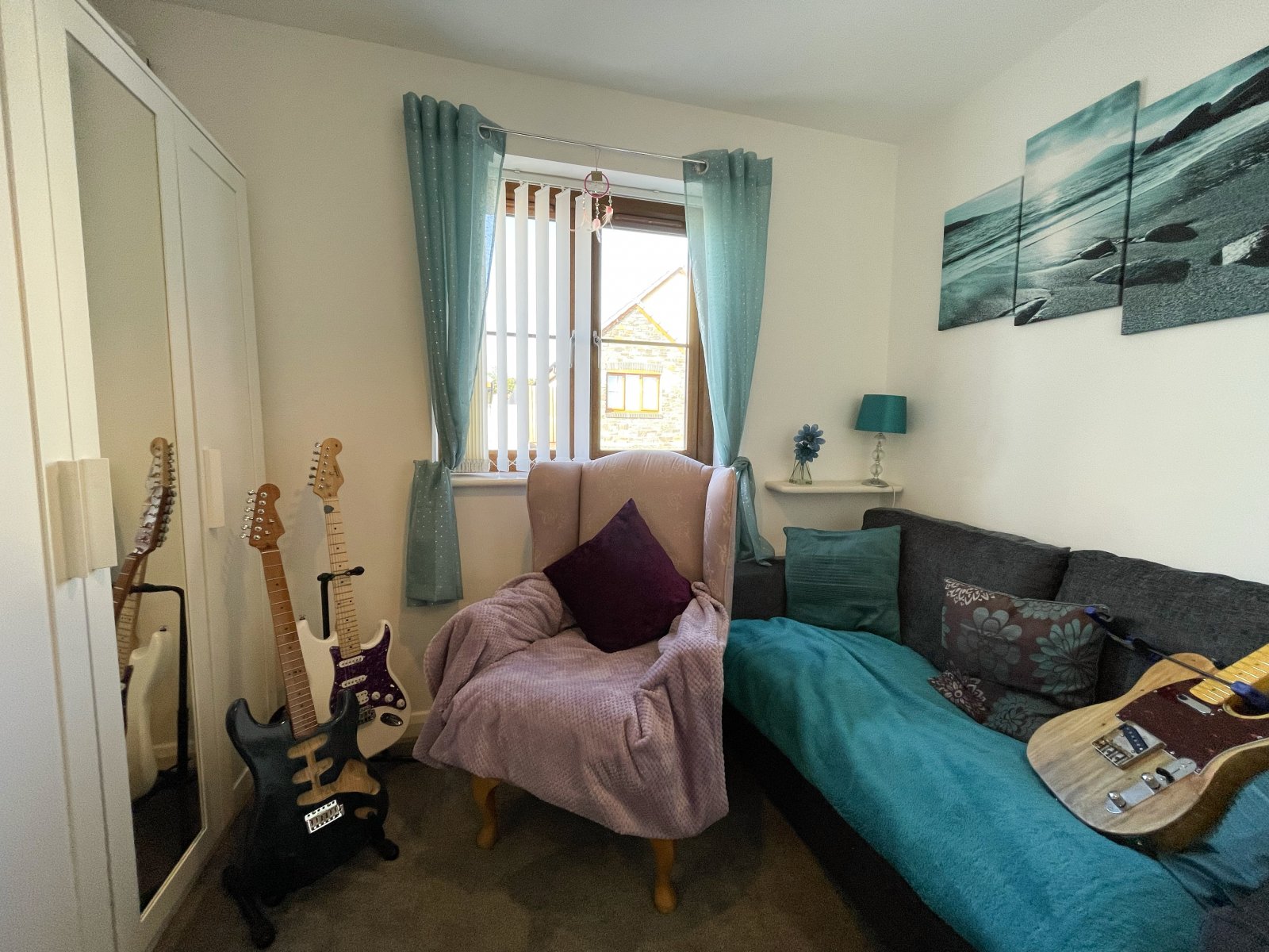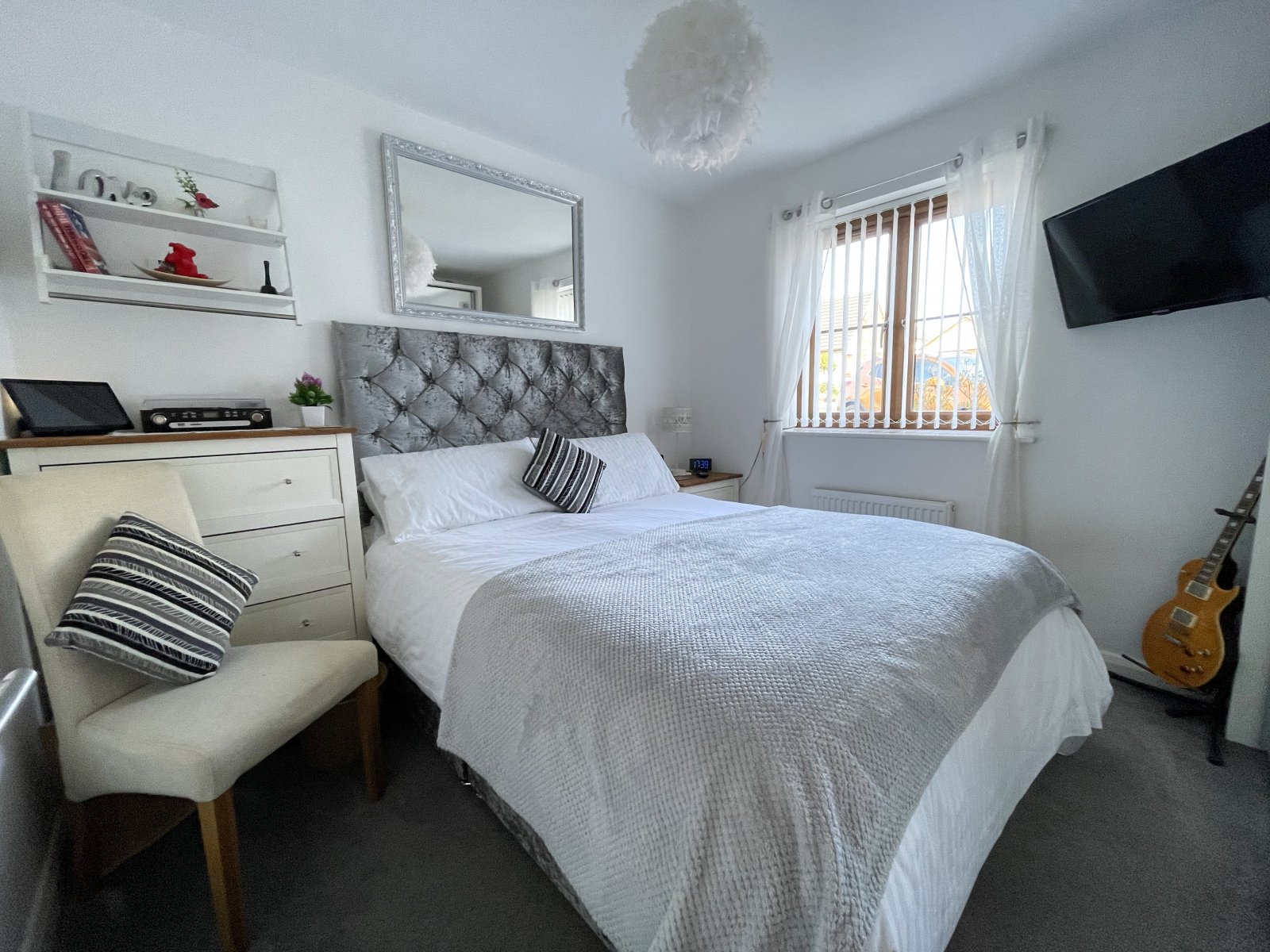 uPVC double glazed window, carpet flooring and wall mounted radiator.