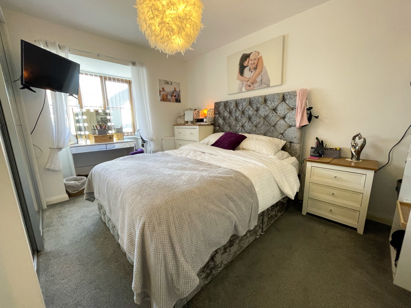 uPVC double glazed window to front of property, carpet flooring, wall mounted radiator, door to En suite.