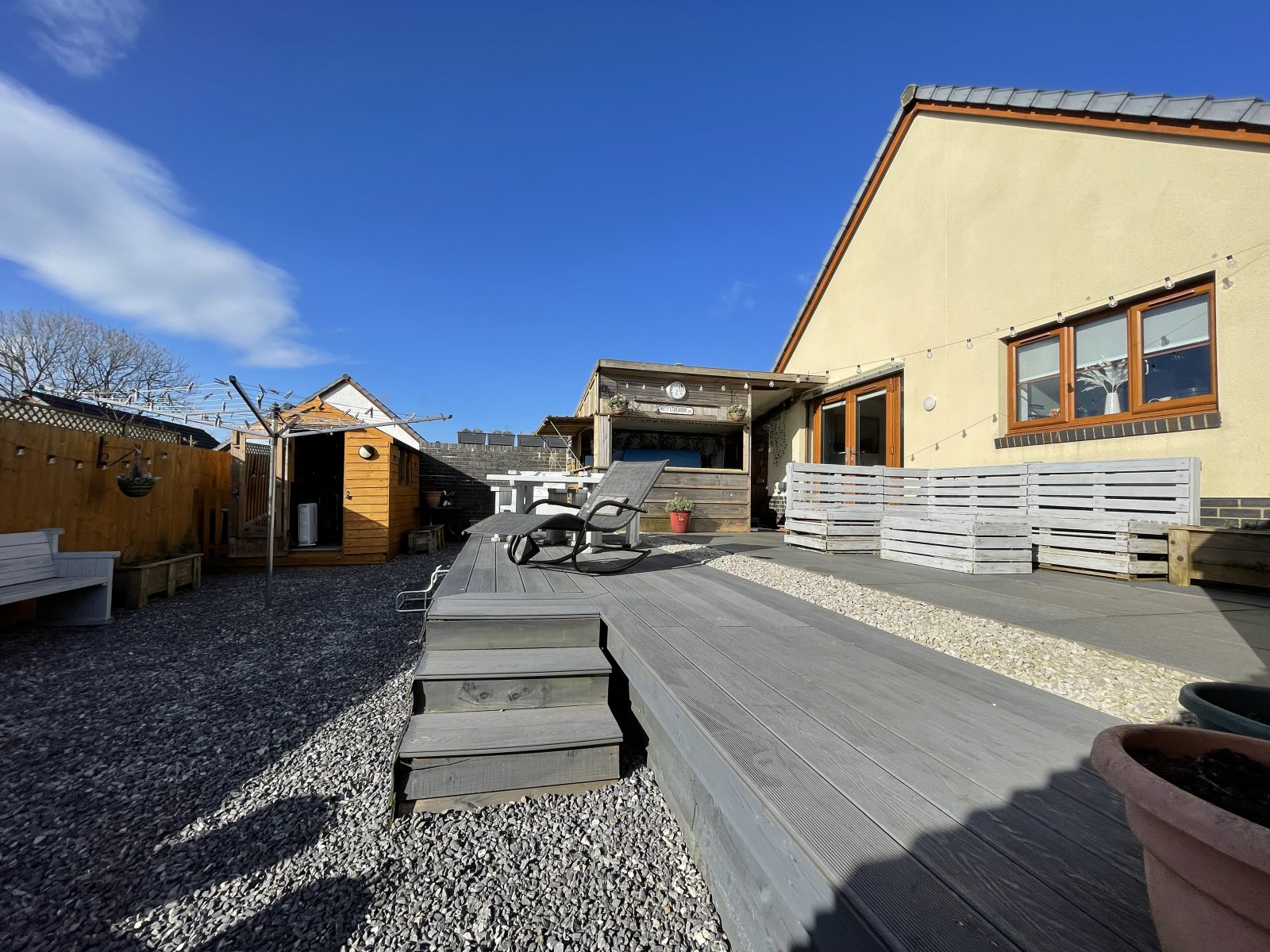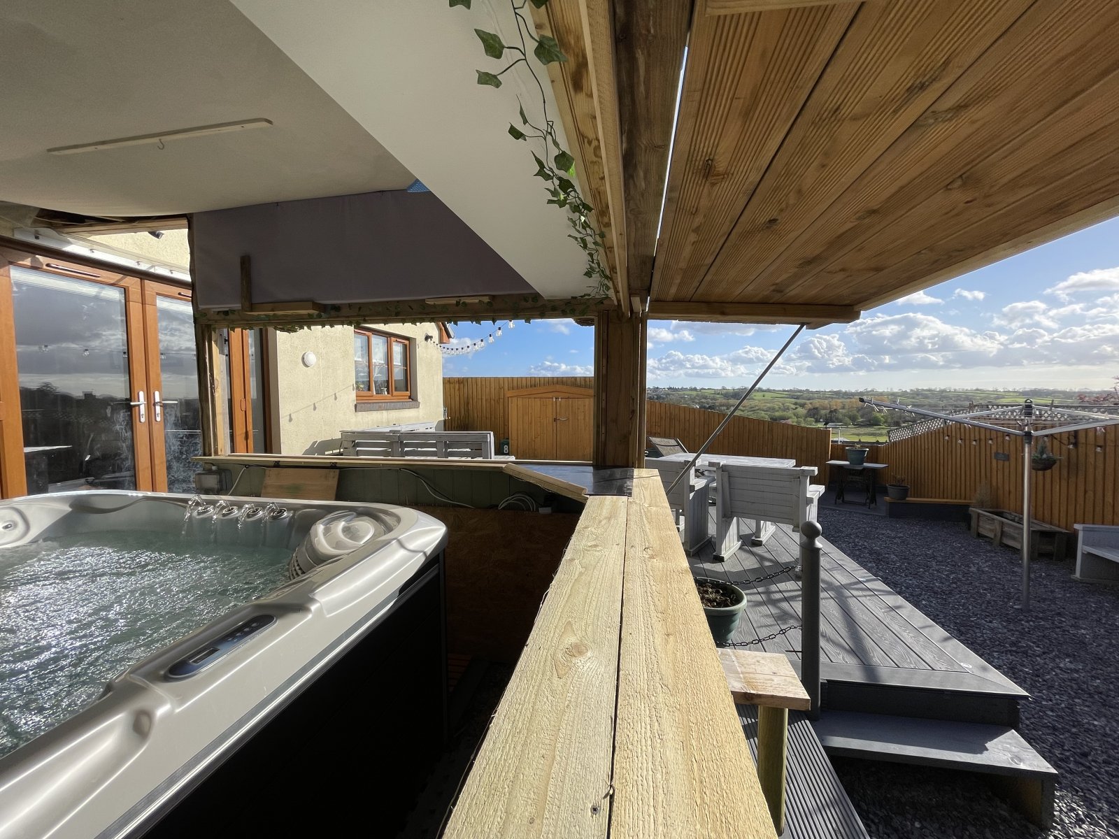 Externally to the for the property has been designed to maximise the parking potential. The property now benefits from parking for 6 cars. To the rear the current vendors have landscaped the garden to make the most of the countryside views to the rear with a number of seating areas. the hot tub and timber pergola are perfect for entertaining or even utilising as a bar. Side access is afforded both sides, ideal for storage, the rear garden is completed by a shed with power and lighting.