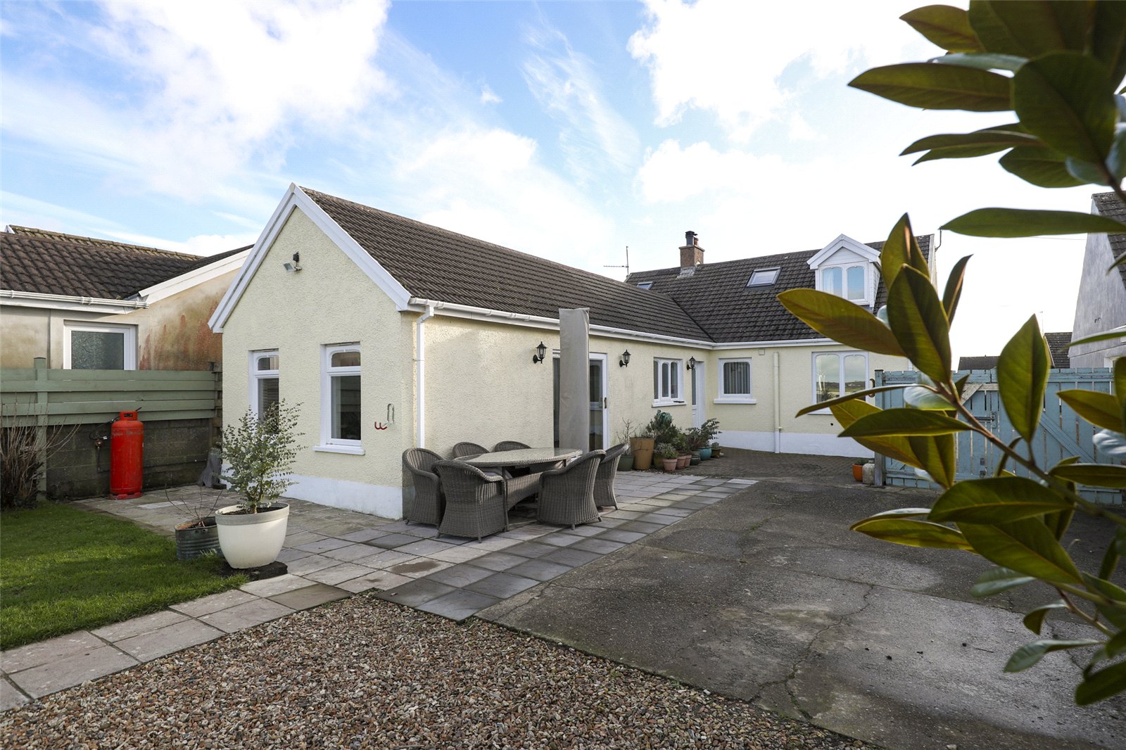 The property benefits from oil-fired central heating, double-glazed windows and doors, and the added warmth and character of two log burners. Internally, the accommodation is thoughtfully arranged, with three bedrooms and a family bathroom on the ground floor, alongside a spacious open-plan kitchen/diner and a large, light-filled lounge enjoying lovely views over the rear garden.