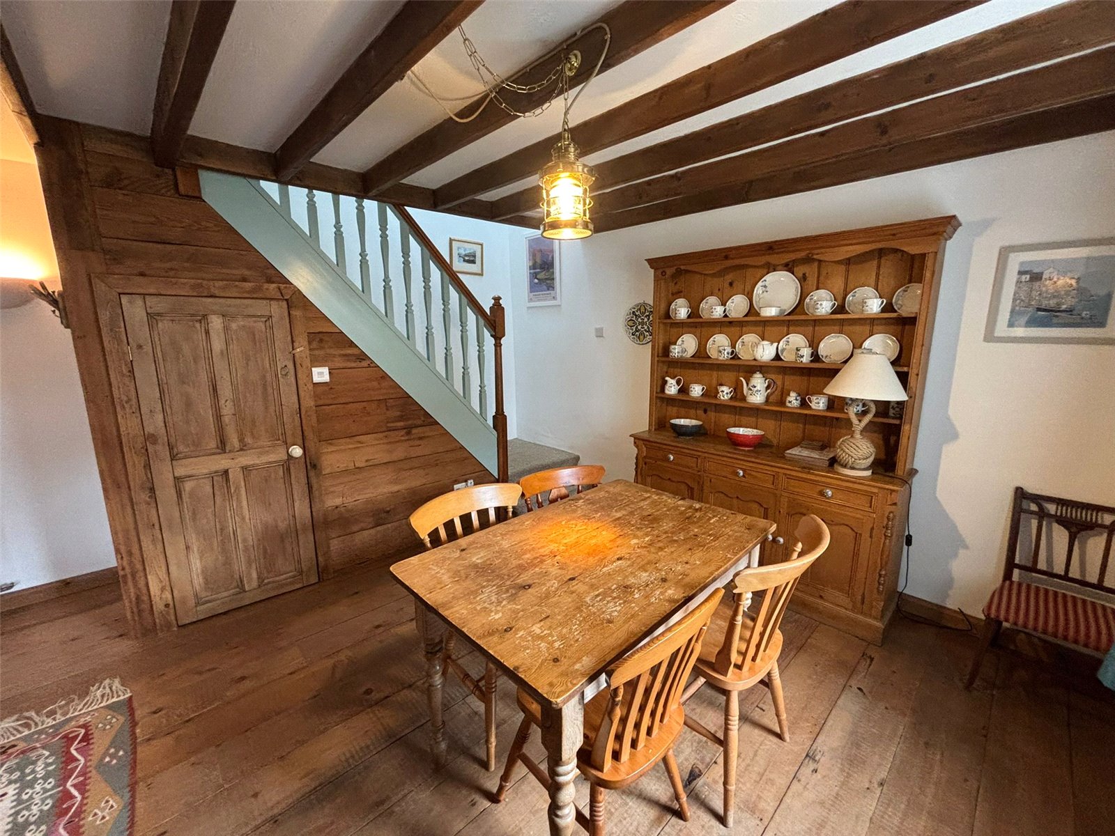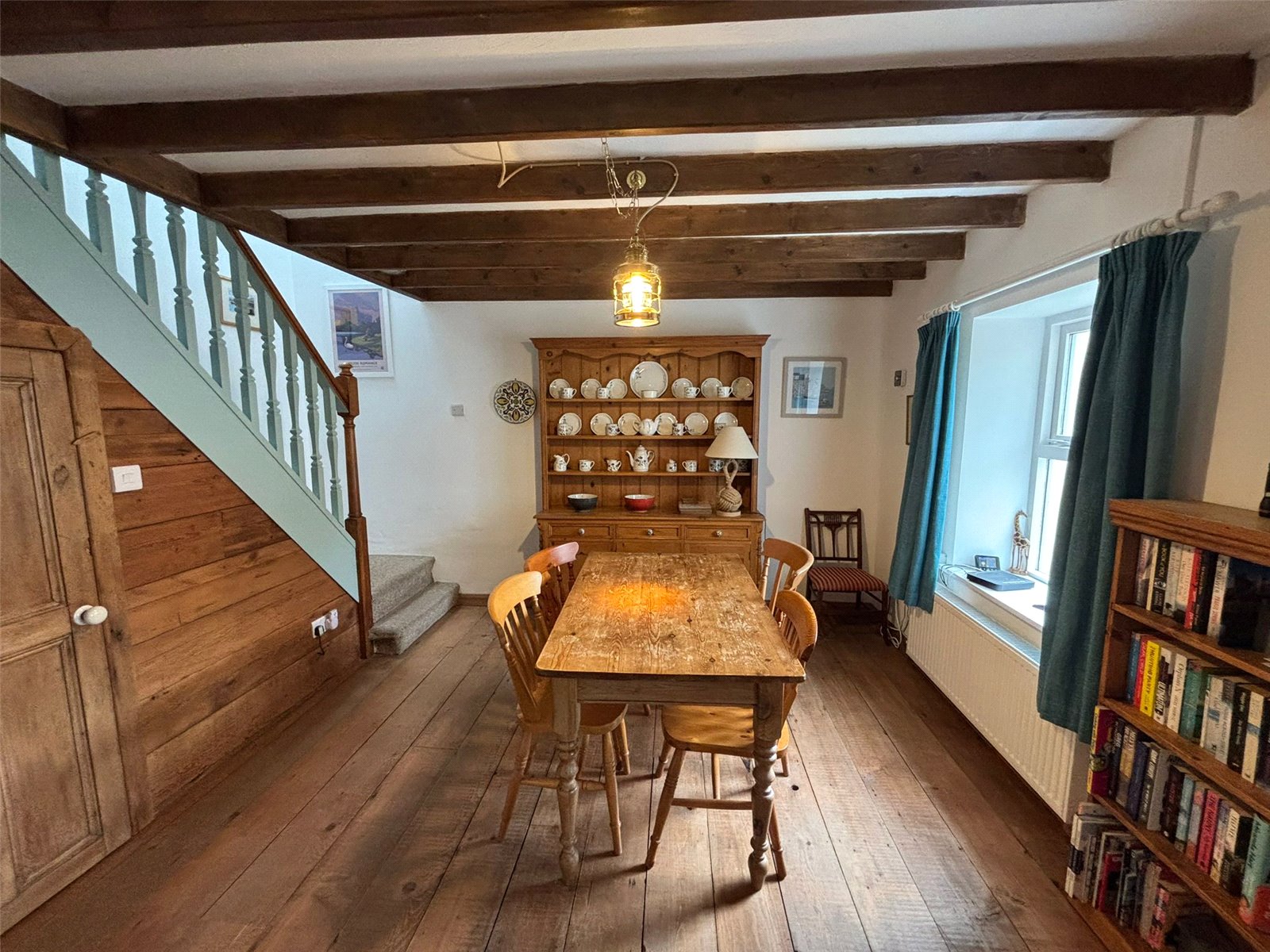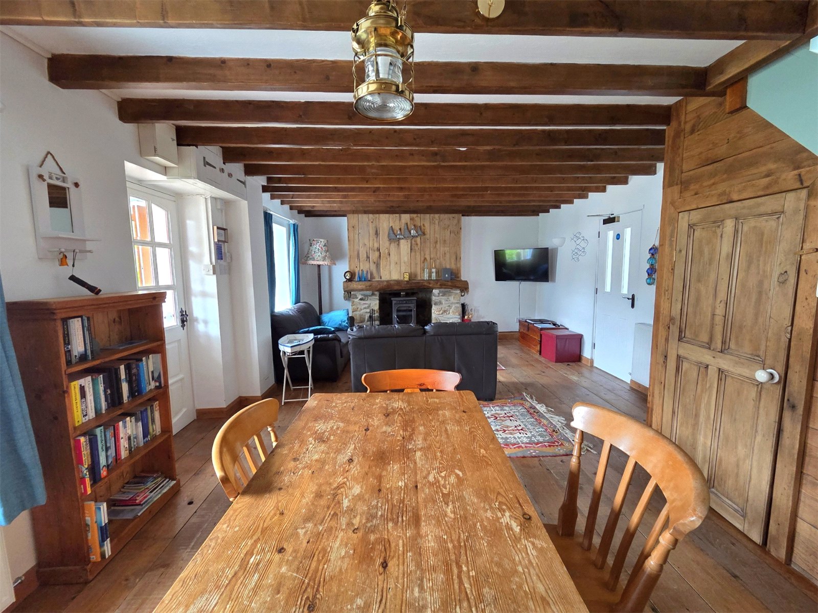 This flexible, open-plan room offers plenty of space for both a family dining table and a comfortable seating area, making it ideal for both relaxed everyday living and entertaining guests. The solid wood flooring adds to the room’s rustic charm and provides a durable, easy-to-maintain finish.