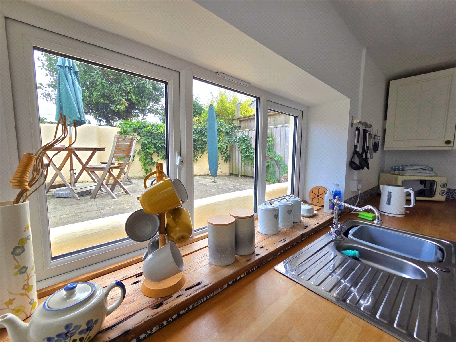 A wide window floods the area with natural light and provide a seamless connection to the garden. This is more than just a place to cook; it's a bright and inviting hub for the entire home, ensuring you're never far from the conversation.