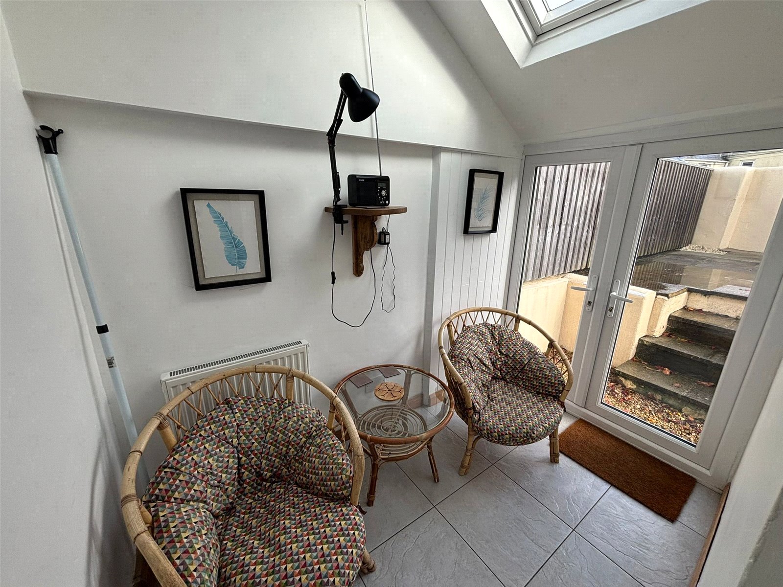 With its generous windows and elegant French doors leading out to the rear garden, it is an ideal spot for a morning coffee or a quiet moment of relaxation. The tiled flooring makes it both a stylish and highly practical space, while the direct garden access allows for seamless indoor-outdoor living, perfect for the warmer months. This versatile room offers a peaceful retreat and a beautiful connection to the property's exterior.