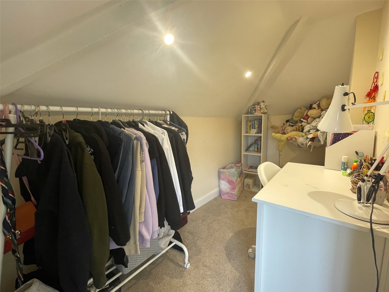 Carpeted floor, uPVC double glazed window, radiator, ceiling light, storage in eaves currently utilised as a dressing room.