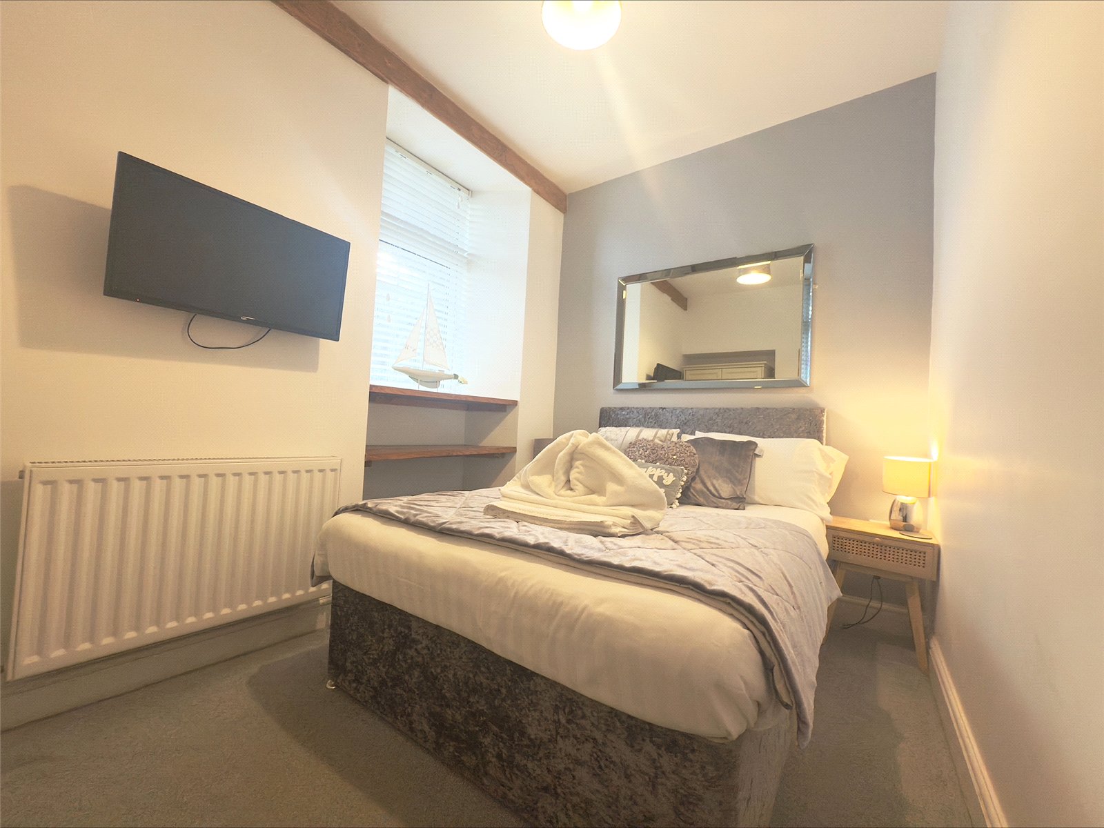 Double bedroom carpet throughout, light fitting, radiator, UPVC window.