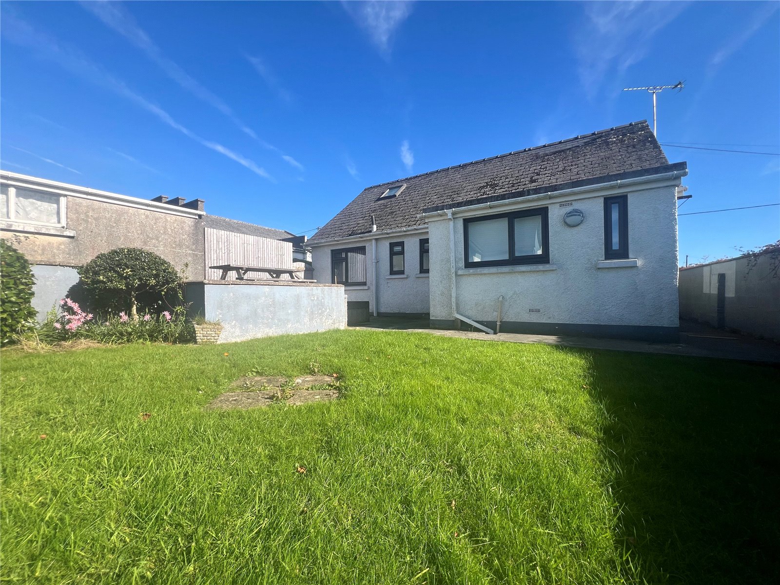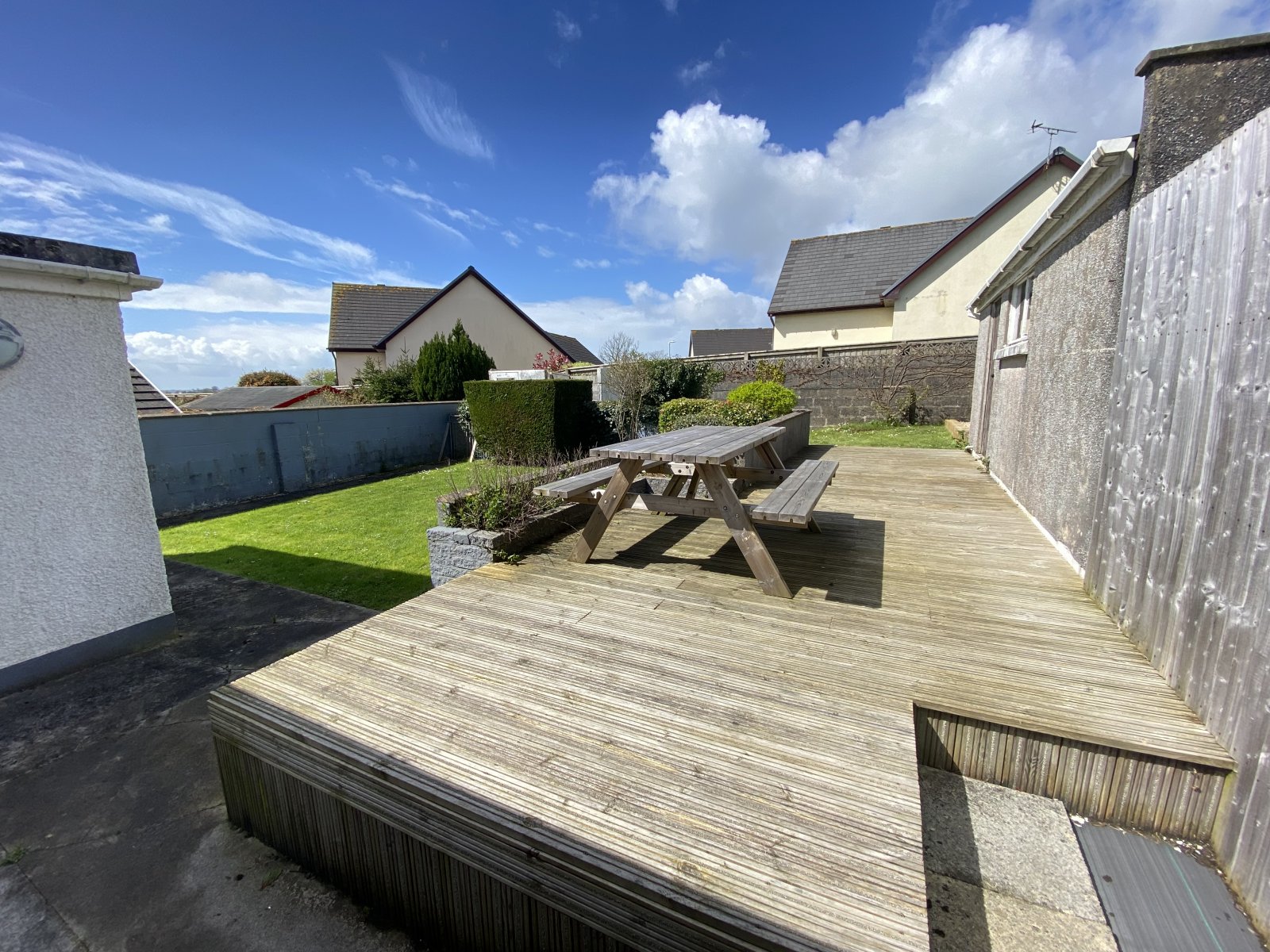 The rear of the property offers a sunny decking sitting area, lawn and BBQ area.
