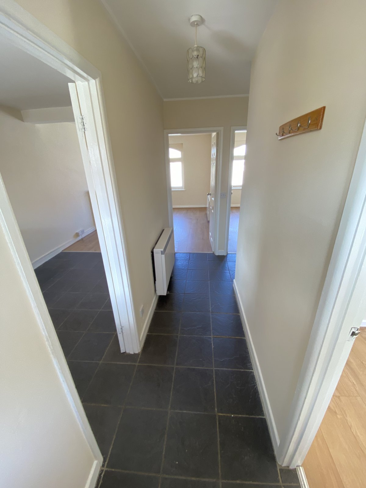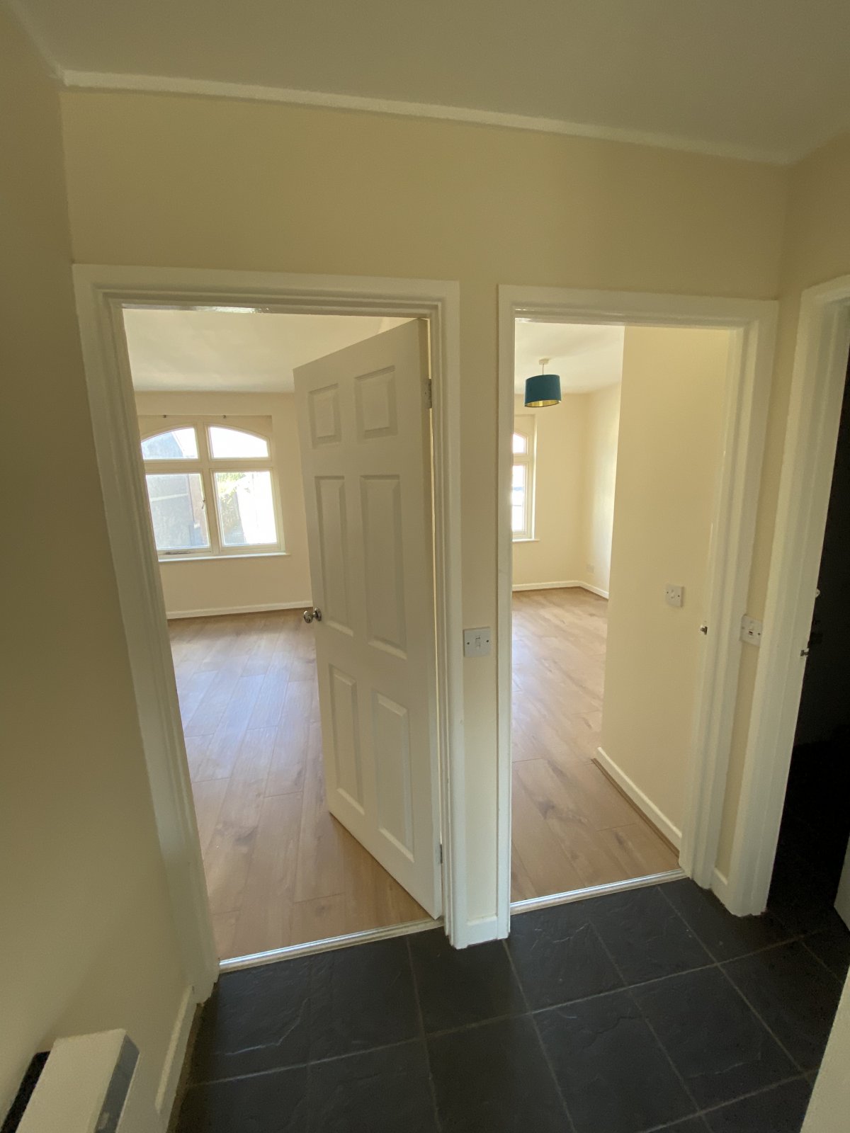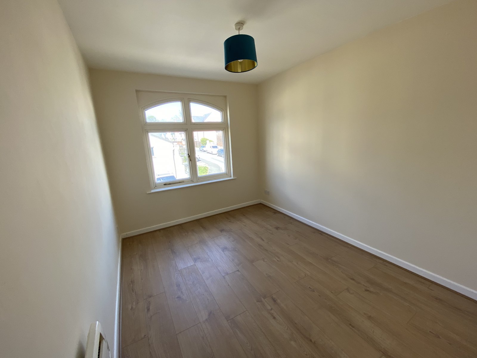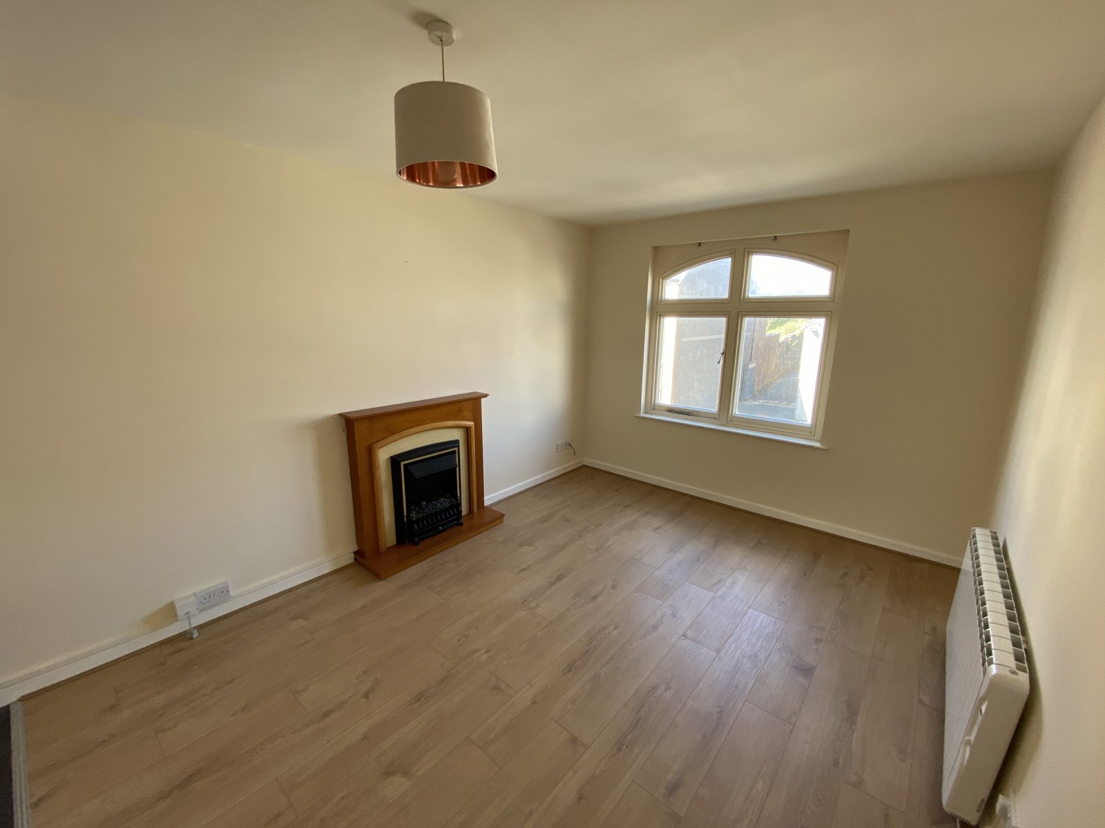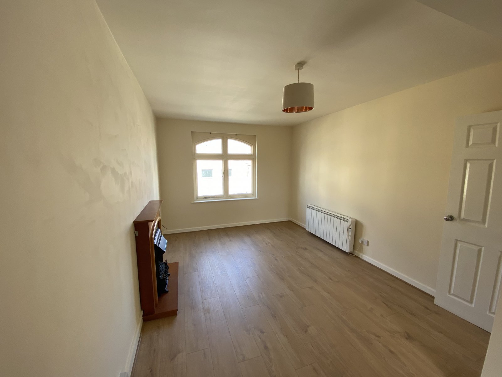 Laminate flooring, Double glaze window unit, light fitting, painted walls, electric wall mounted heater.