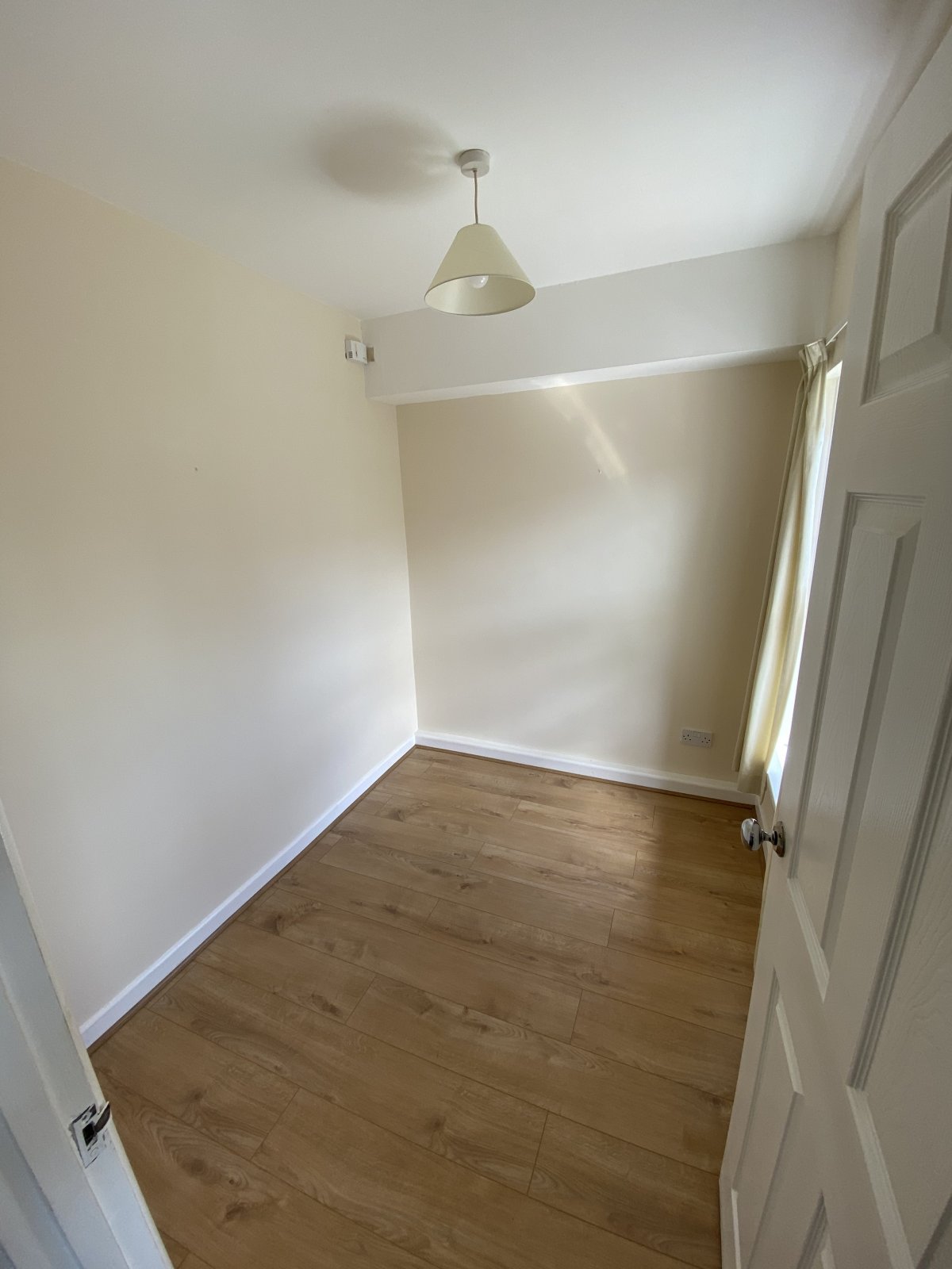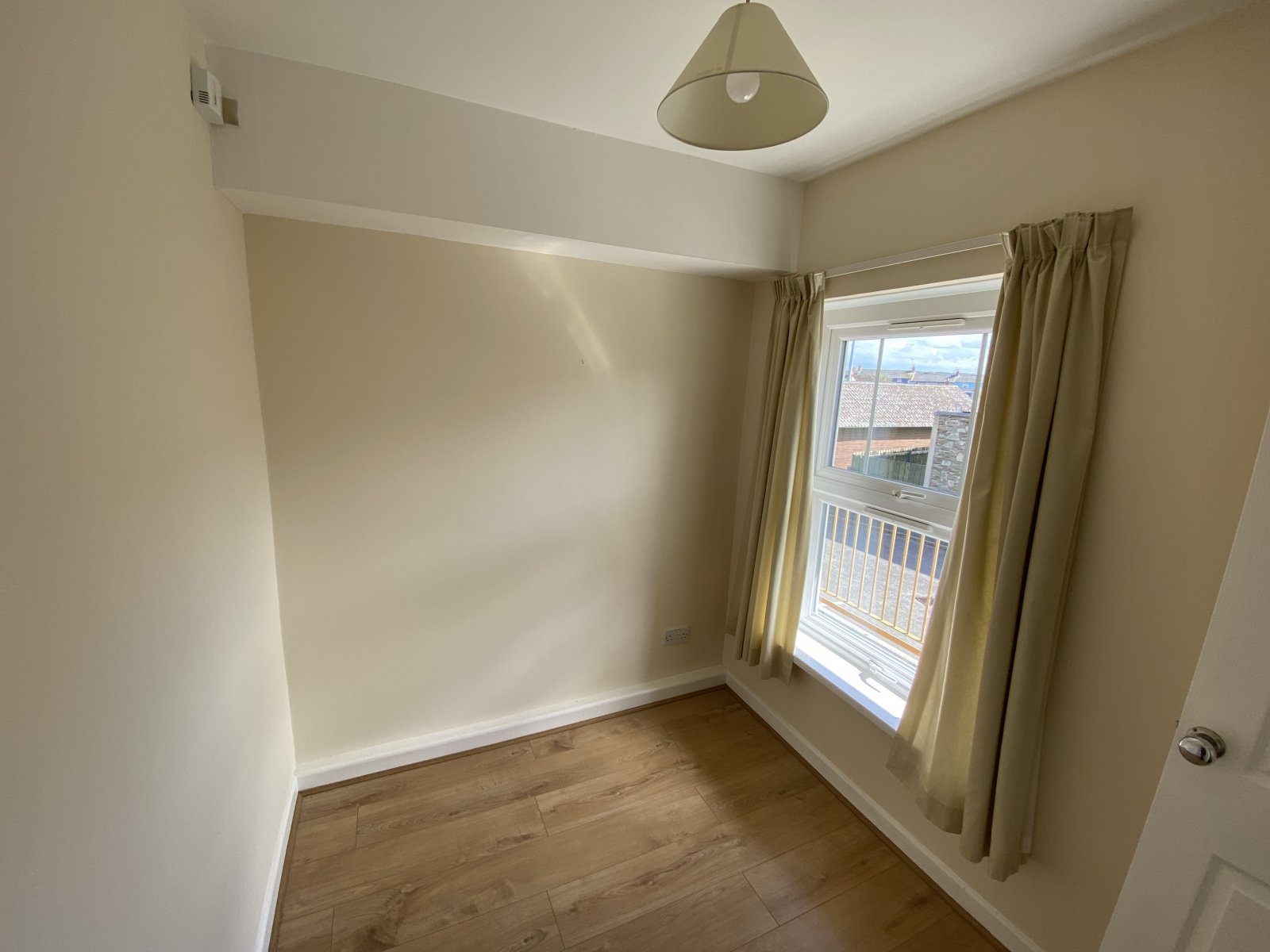 Single size bedroom or home office. Laminate flooring UPVC window unit, light fitting and electric sockets.,electric wall mounted heater.
