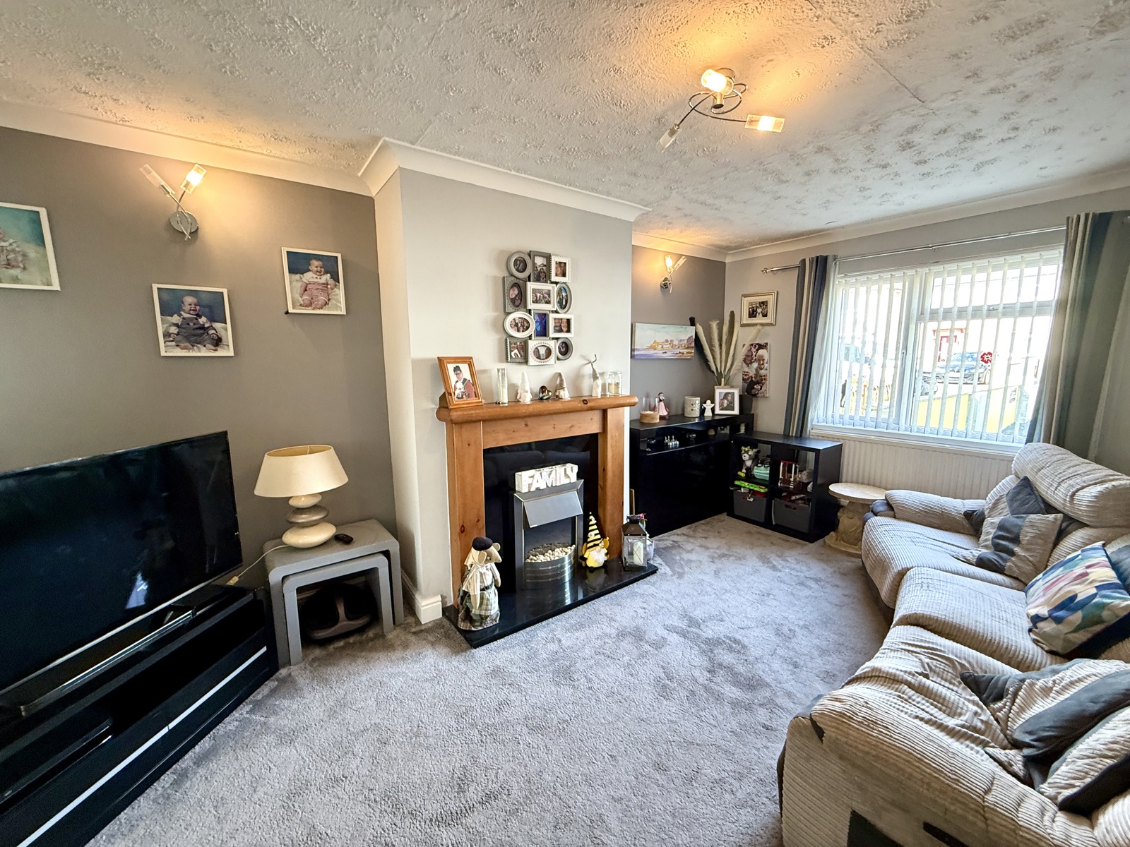 Carpeted flooring and uPVC double glazed window looking out to the front of the property.