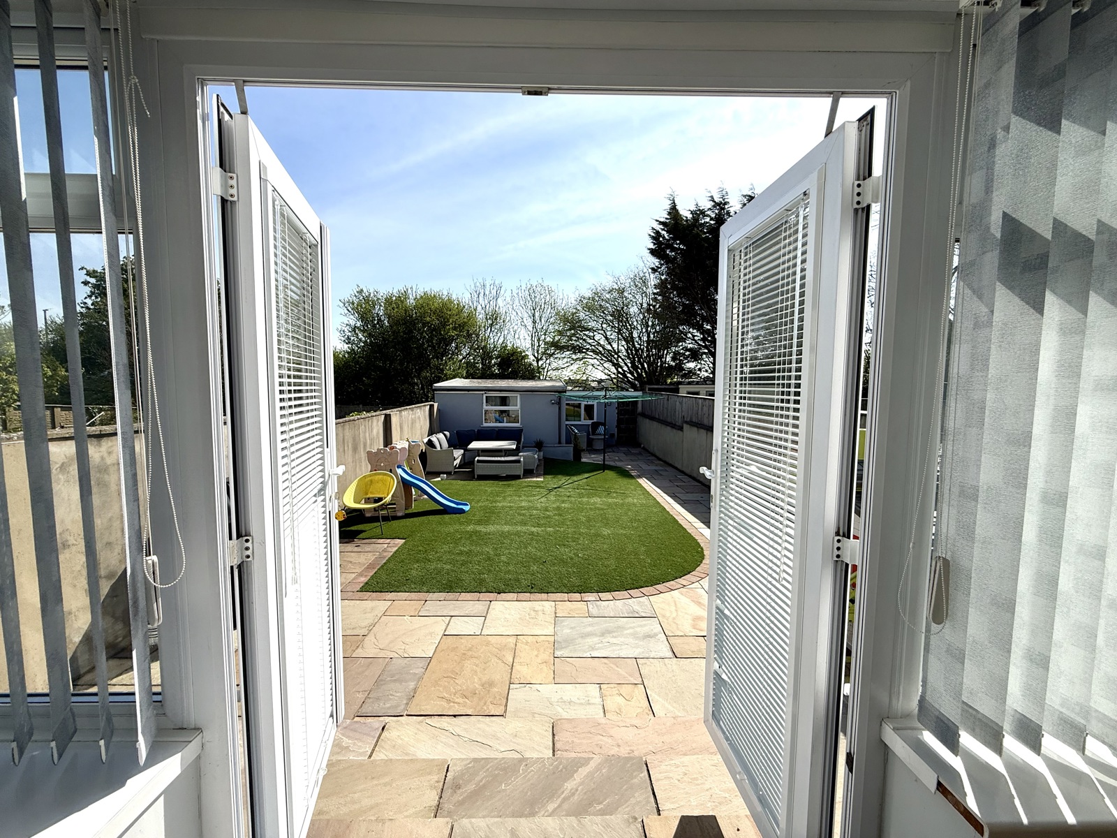 Tiled flooring, uPVC double glazed windows, two sky lights and uPVC double glazed doors leading to the rear garden.