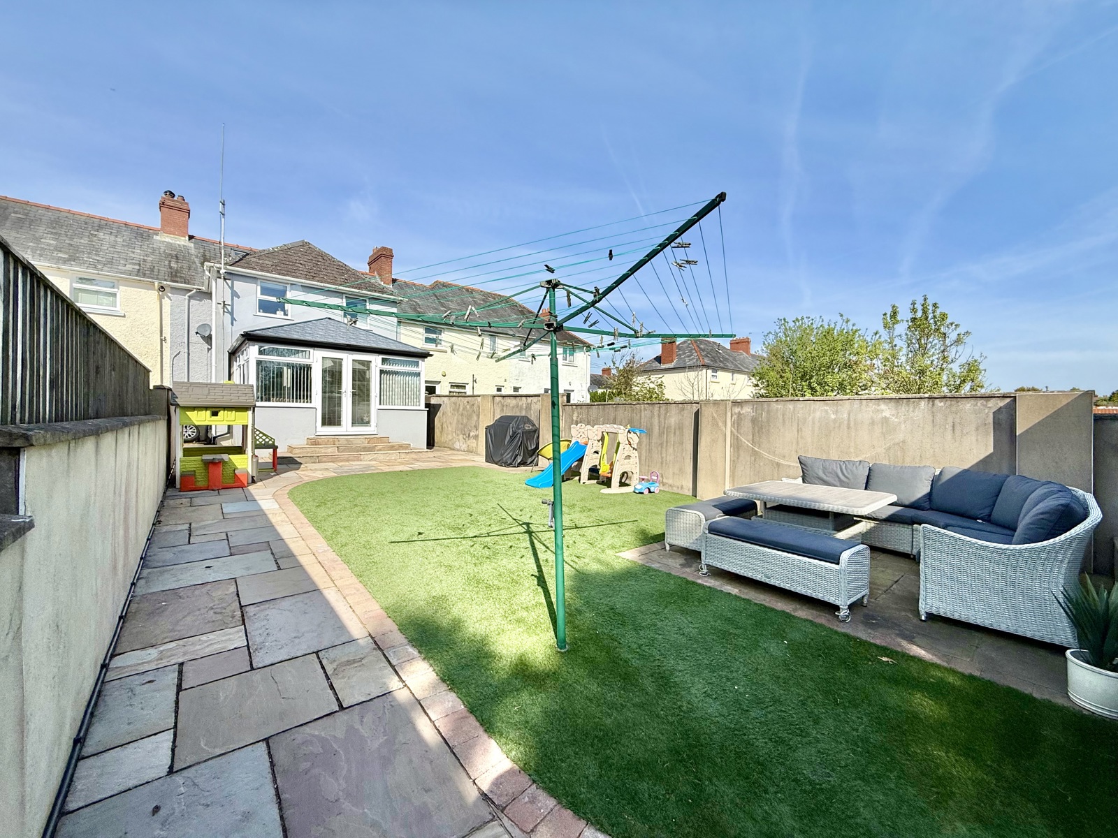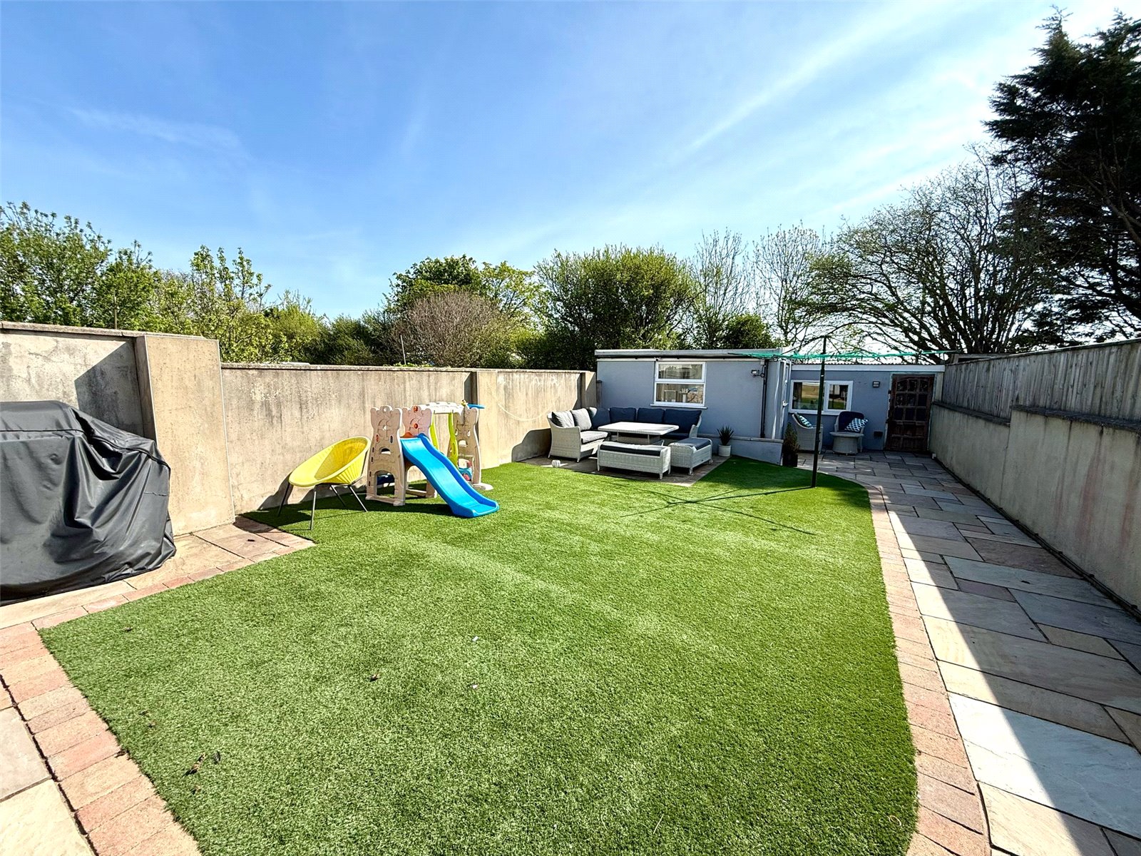 To the rear of the property there is a gorgeous garden laid to lawn and patio slabs. At the bottom of the garden is a storage shed and the garden room.