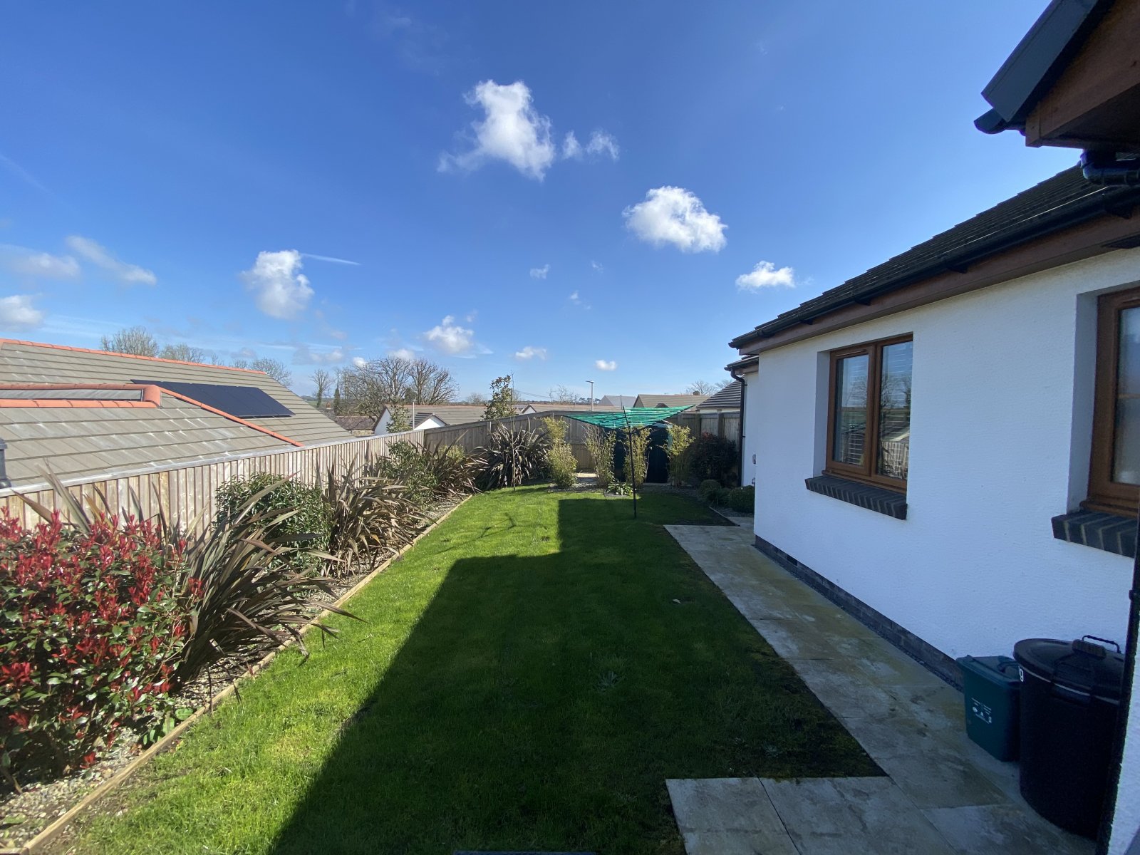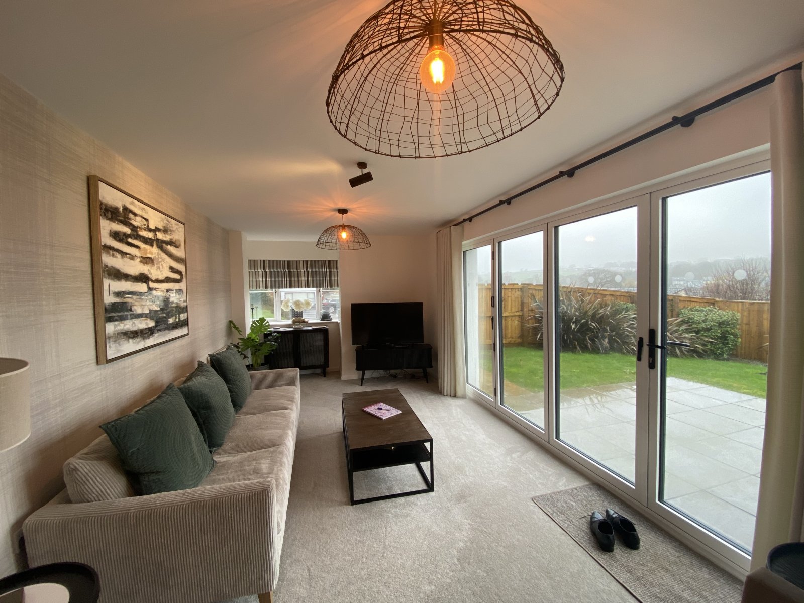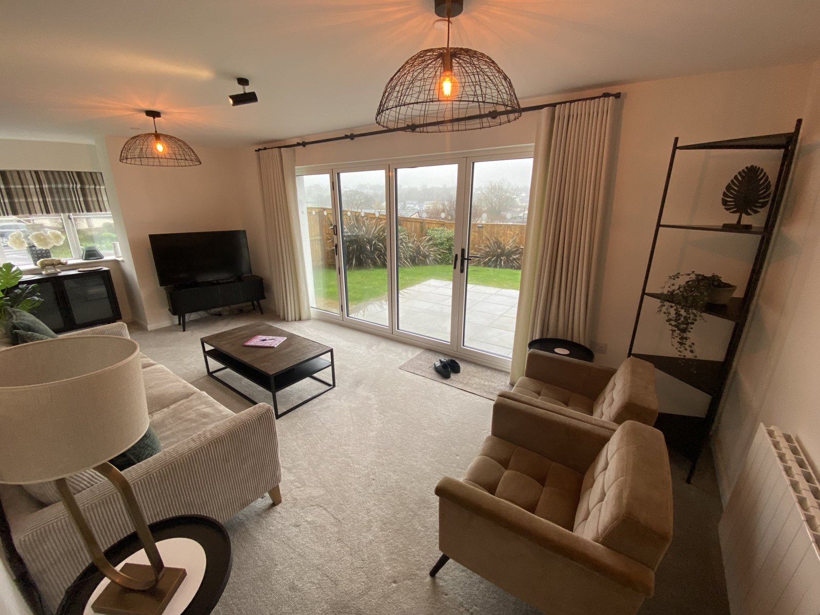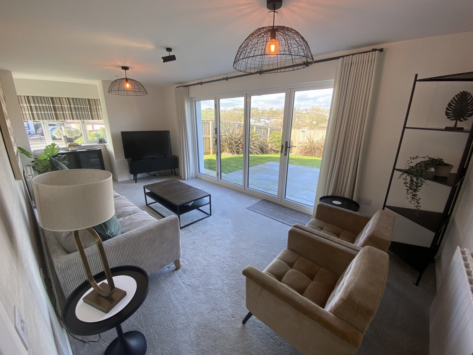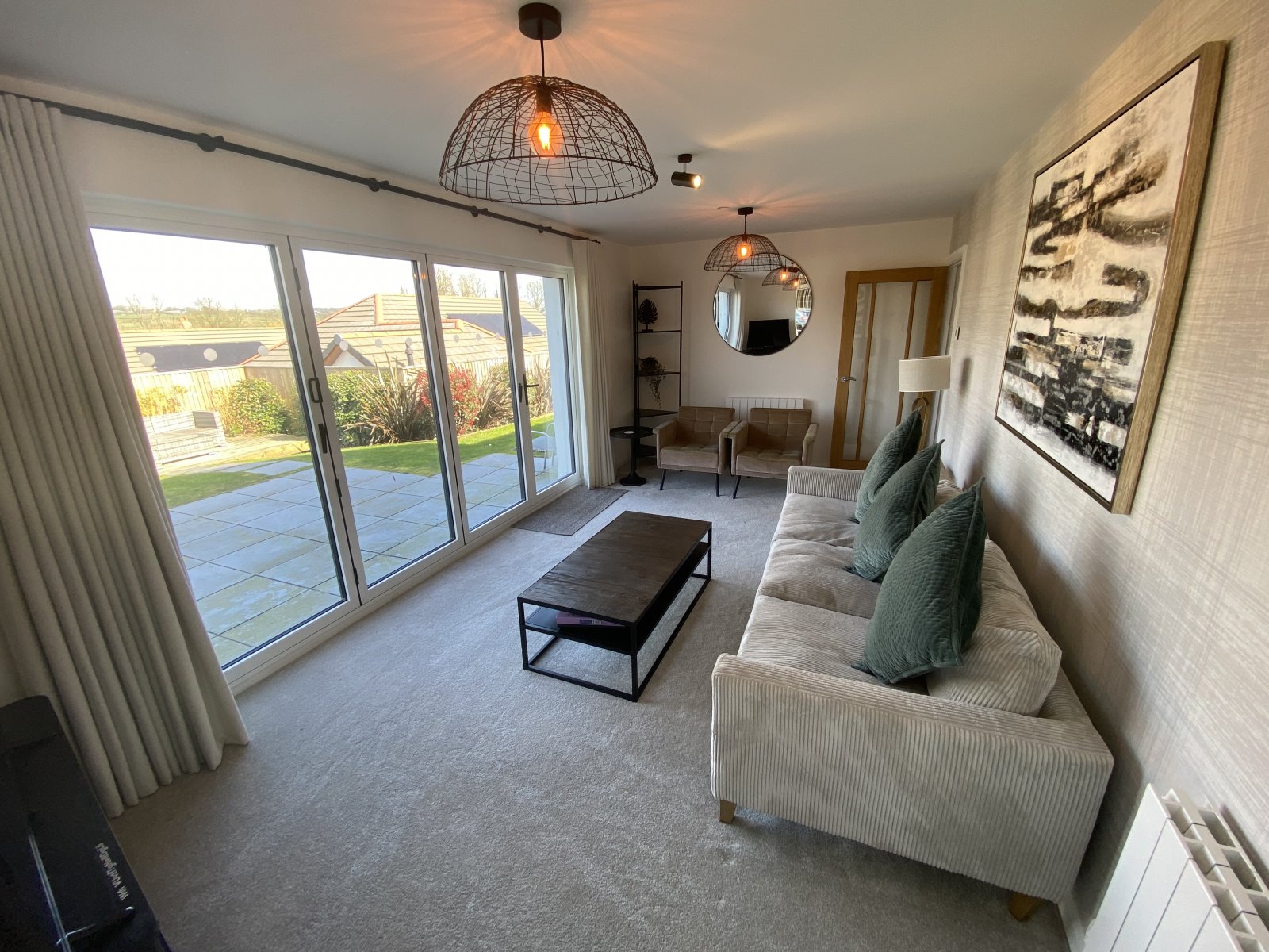 Lovely sunny room overlooking enclosed rear garden and the village beyond. Large glass patio doors leading to garden, TV electric points, radiator, fitted carpet.