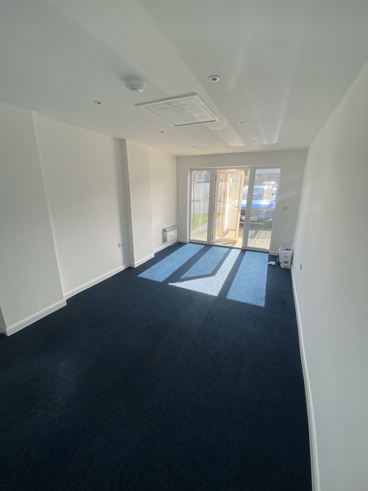 Originally the garage which was converted by the developer to accomodate the sales office. It remains a carpeted room which would make a great home gym, office or hobbies room. It could also be reinstated as a garage.
