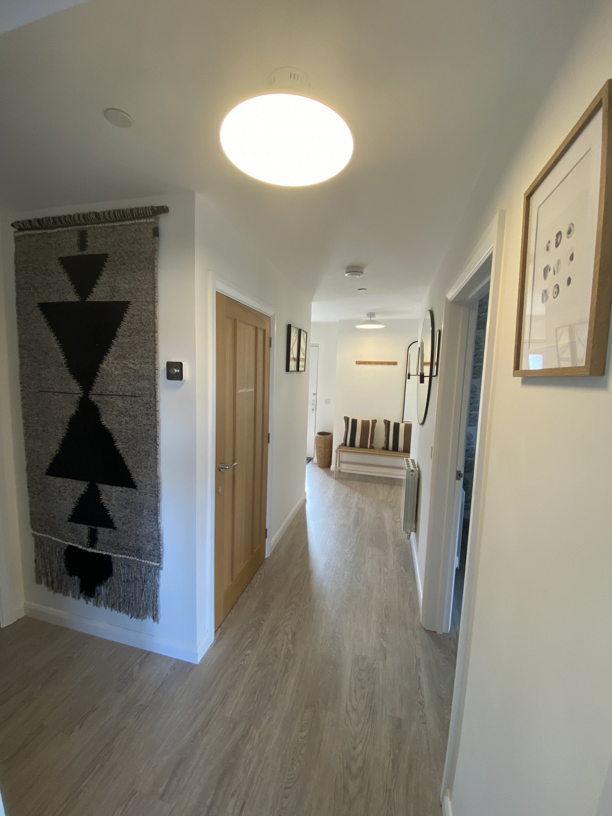 UPVC front door leading into a large circulating hallway leading to all rooms, 2 storage cupboards, light fitting, Karndean flooring throughout.