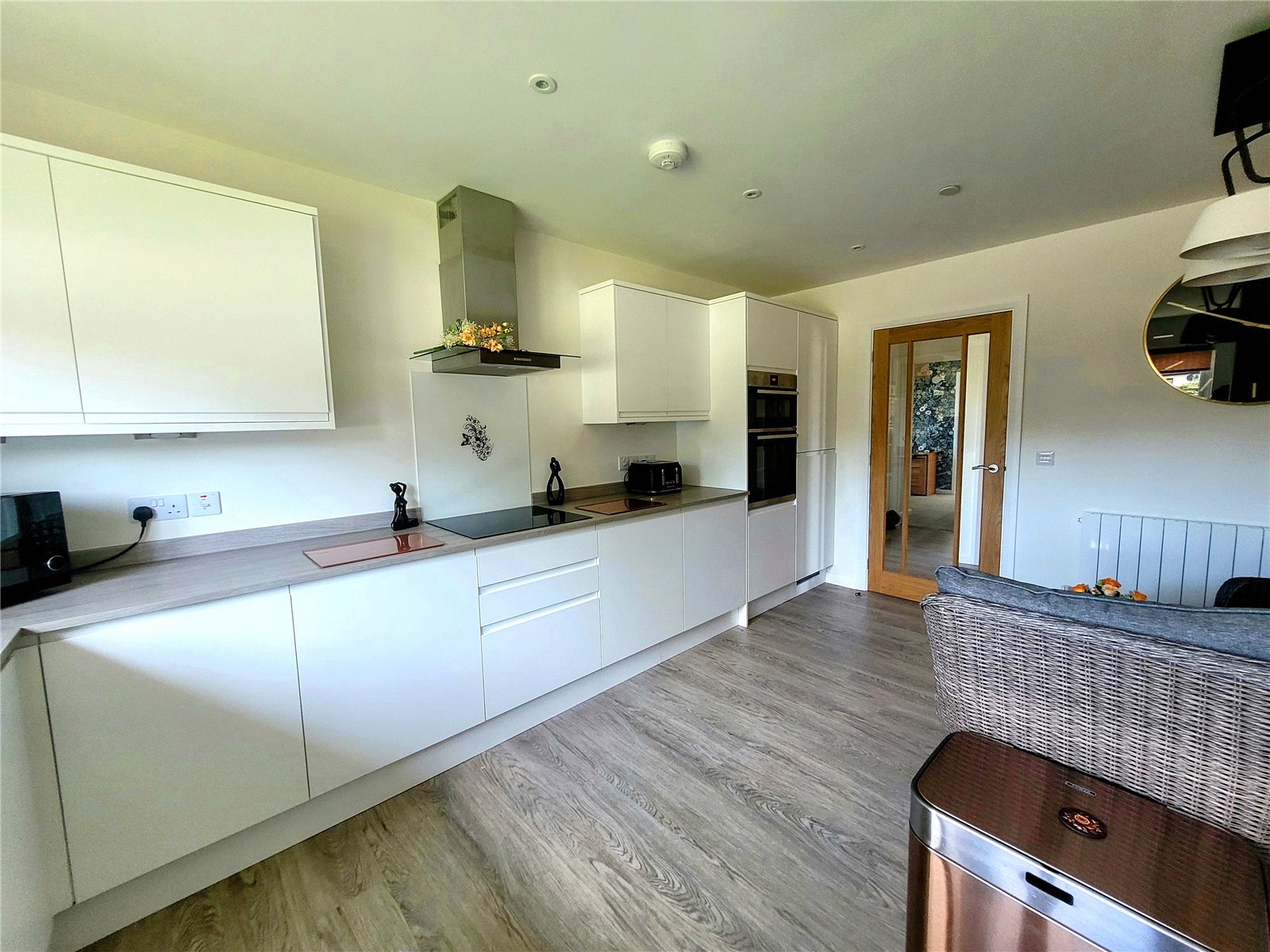 UPVC front door leading into a large circulating hallway leading to all rooms, 2 storage cupboards, light fitting, Karndean flooring throughout.