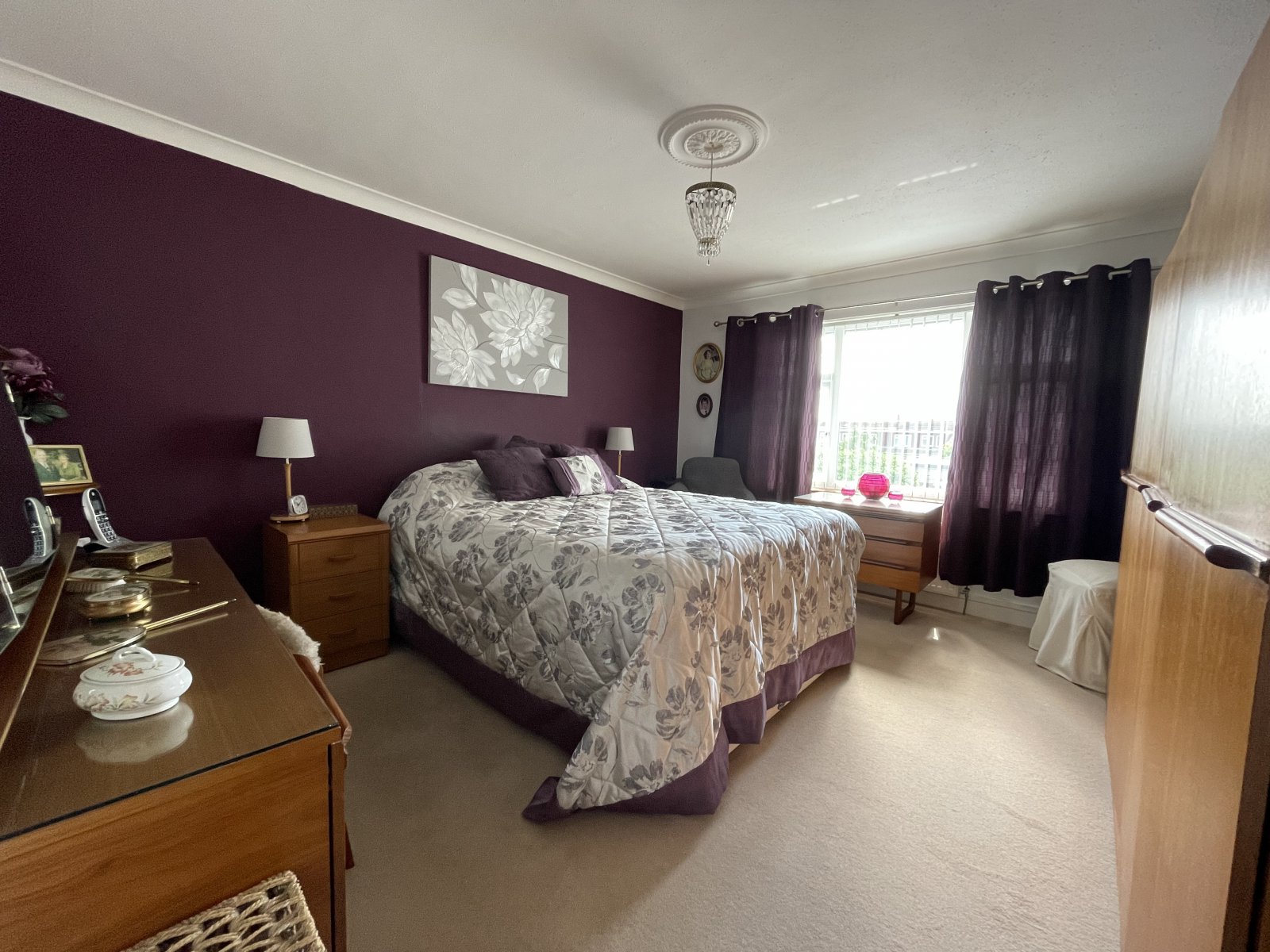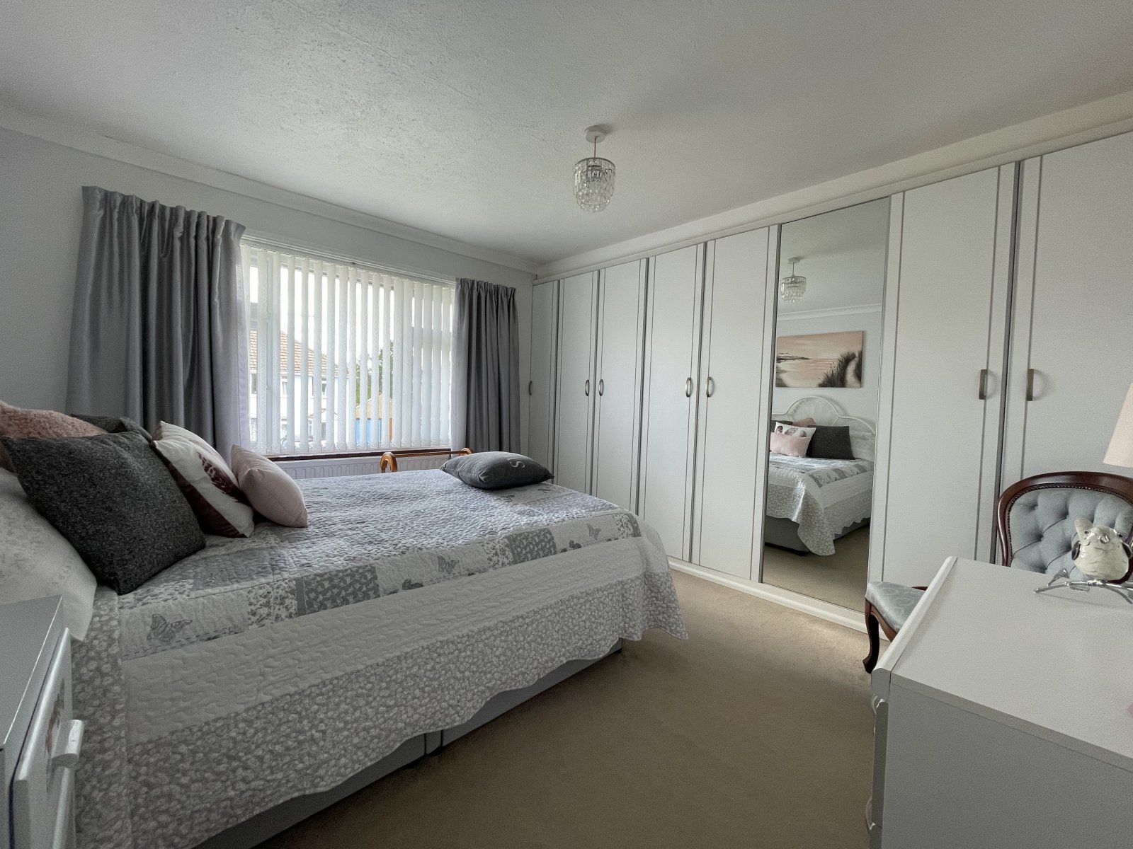 Carpet flooring, fitted wardrobe, double glazed uPVC window to fore, radiator.