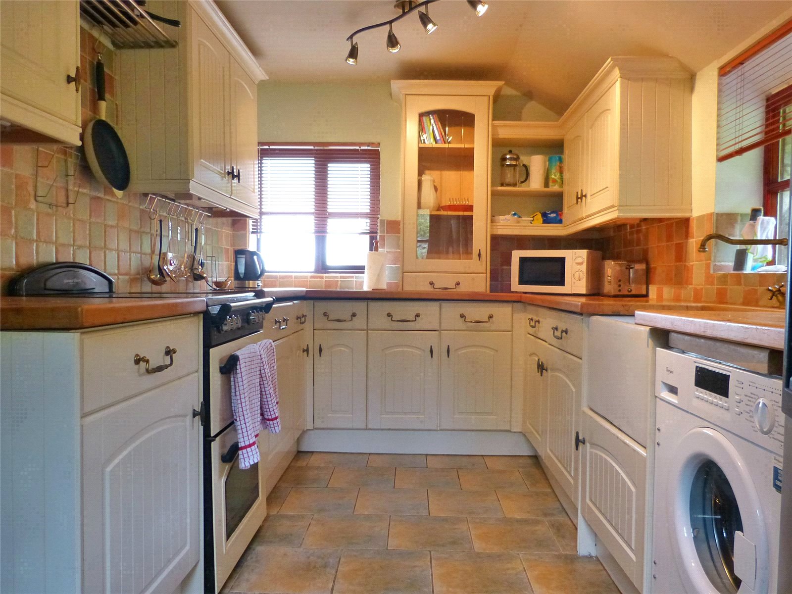 Tiled Flooring, Double Glazed Window To Fore, Double Glazed Window To Side, Base & Eye Level Units U-Shape, Belfast Sink With Mixer Tap, Electric Oven, Integrated Dishwasher, Stable Door To Rear Patio Area