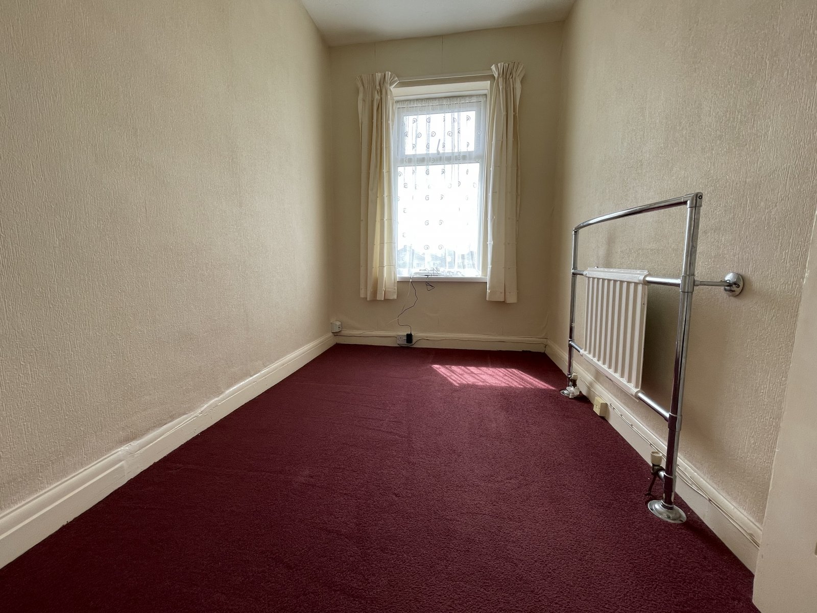 Front-facing single bedroom, with uPVC double-glazed window, carpeted flooring, light fitting & radiator.