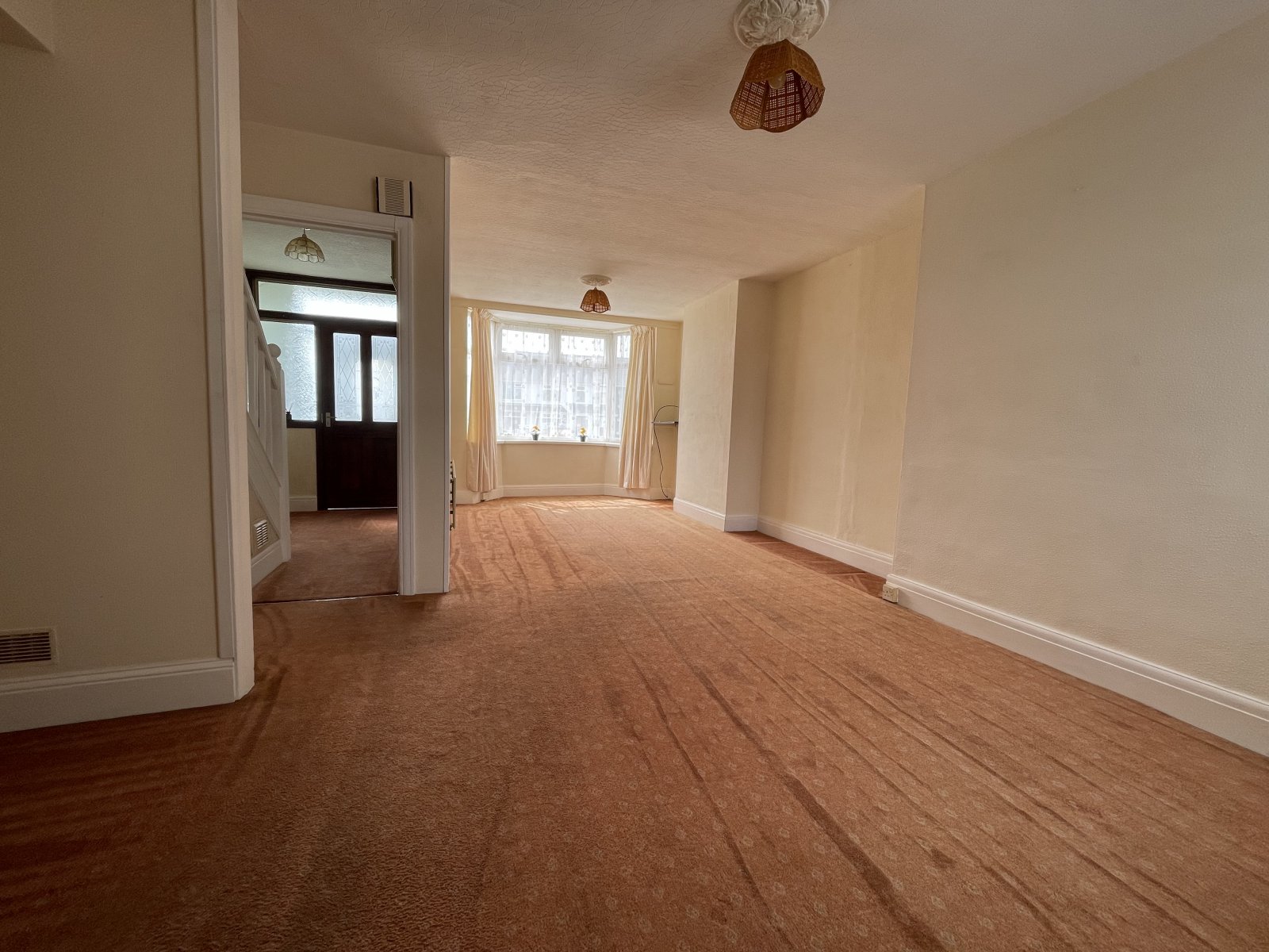 L-shaped open plan lounge/diner, with carpeted flooring, uPVC double-glazed windows to the fore & rear, recessed shelving, under-stairs storage, 2 x radiators, 3 x light fittings and access to;