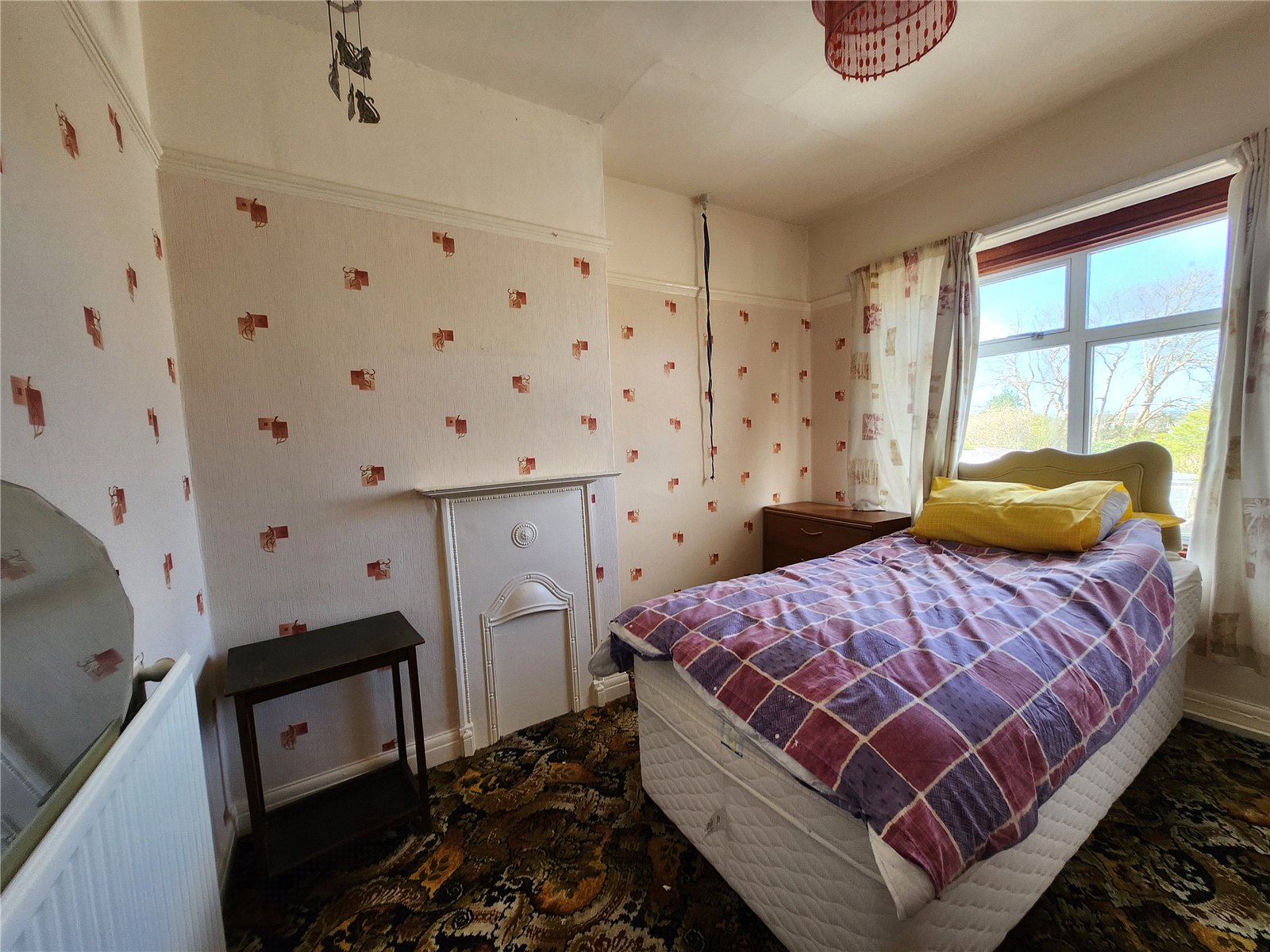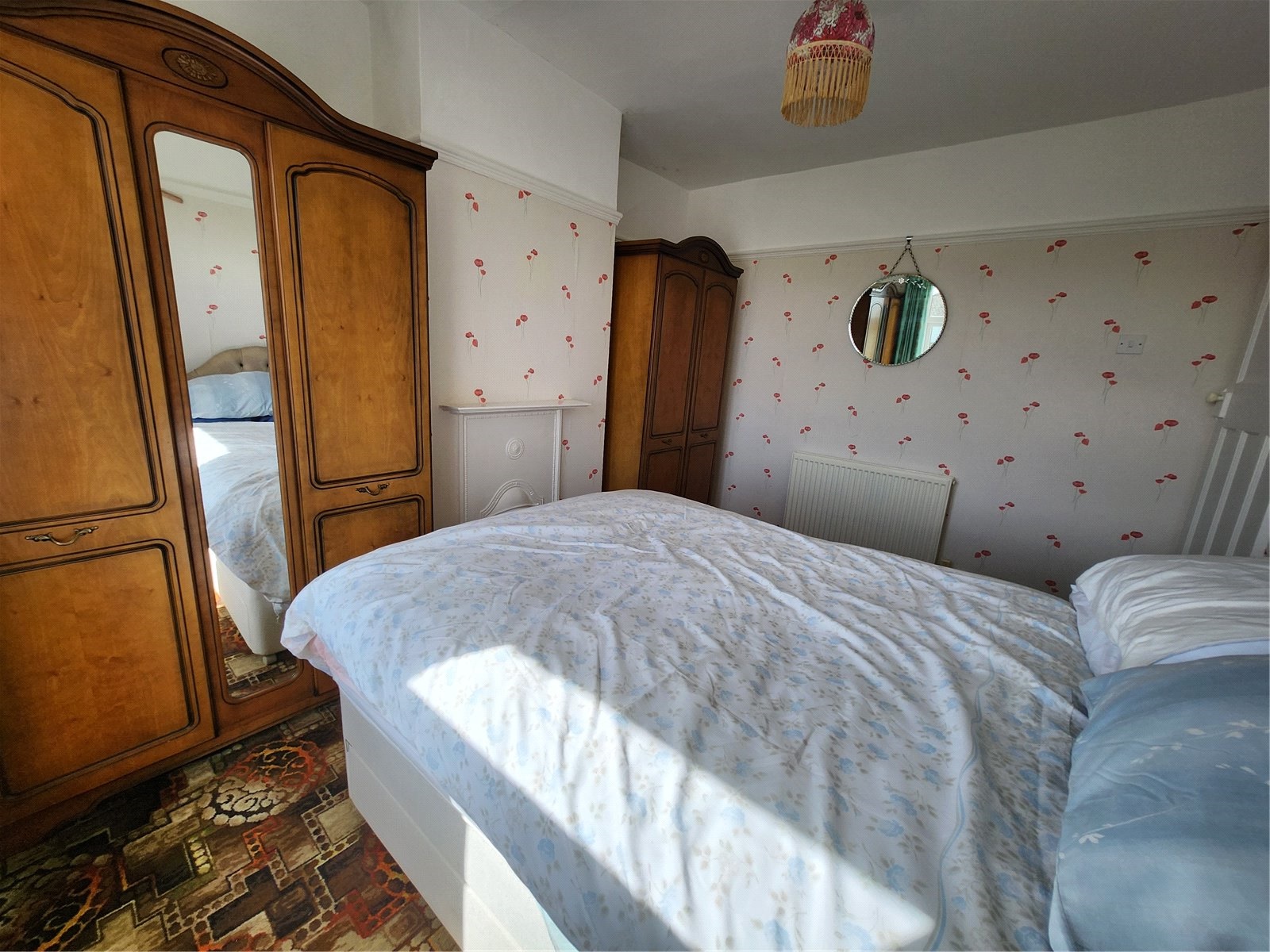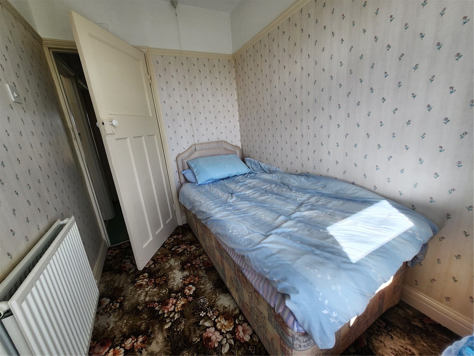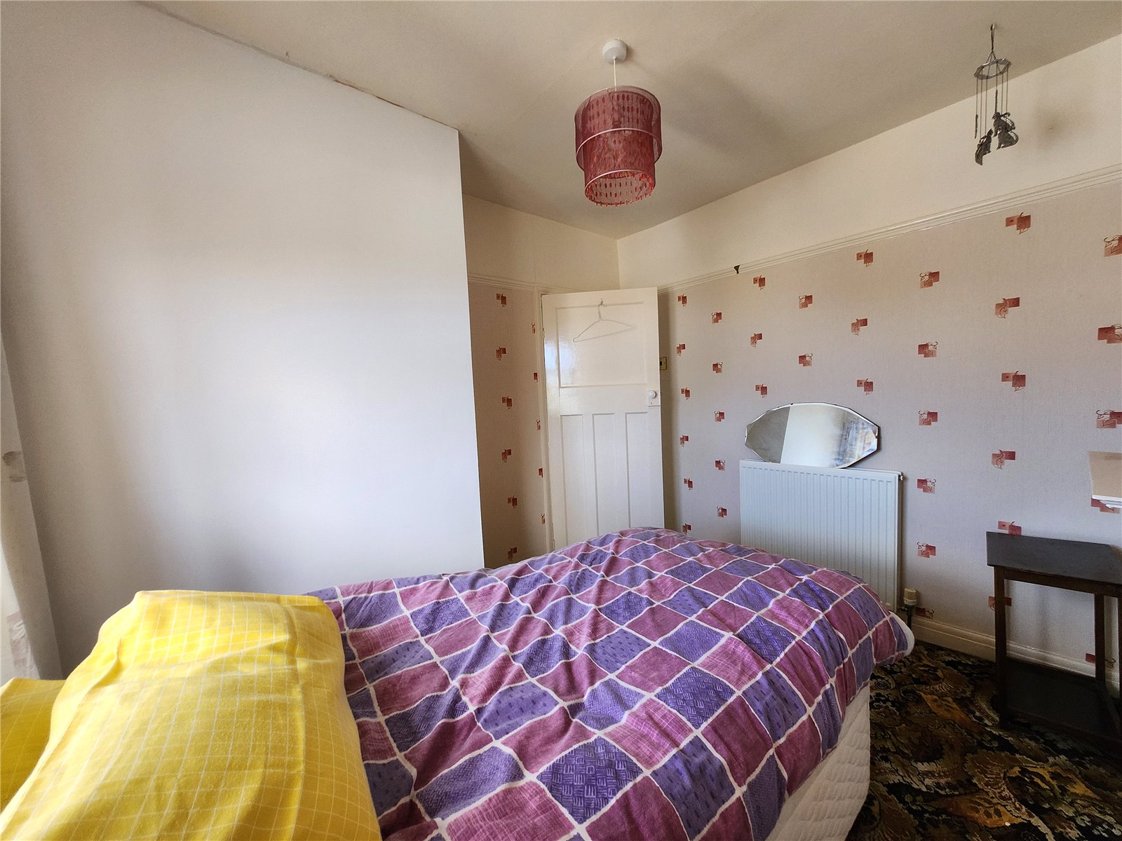 Front-facing bedroom, with uPVC double-glazed window, carpeted flooring & light fitting.
