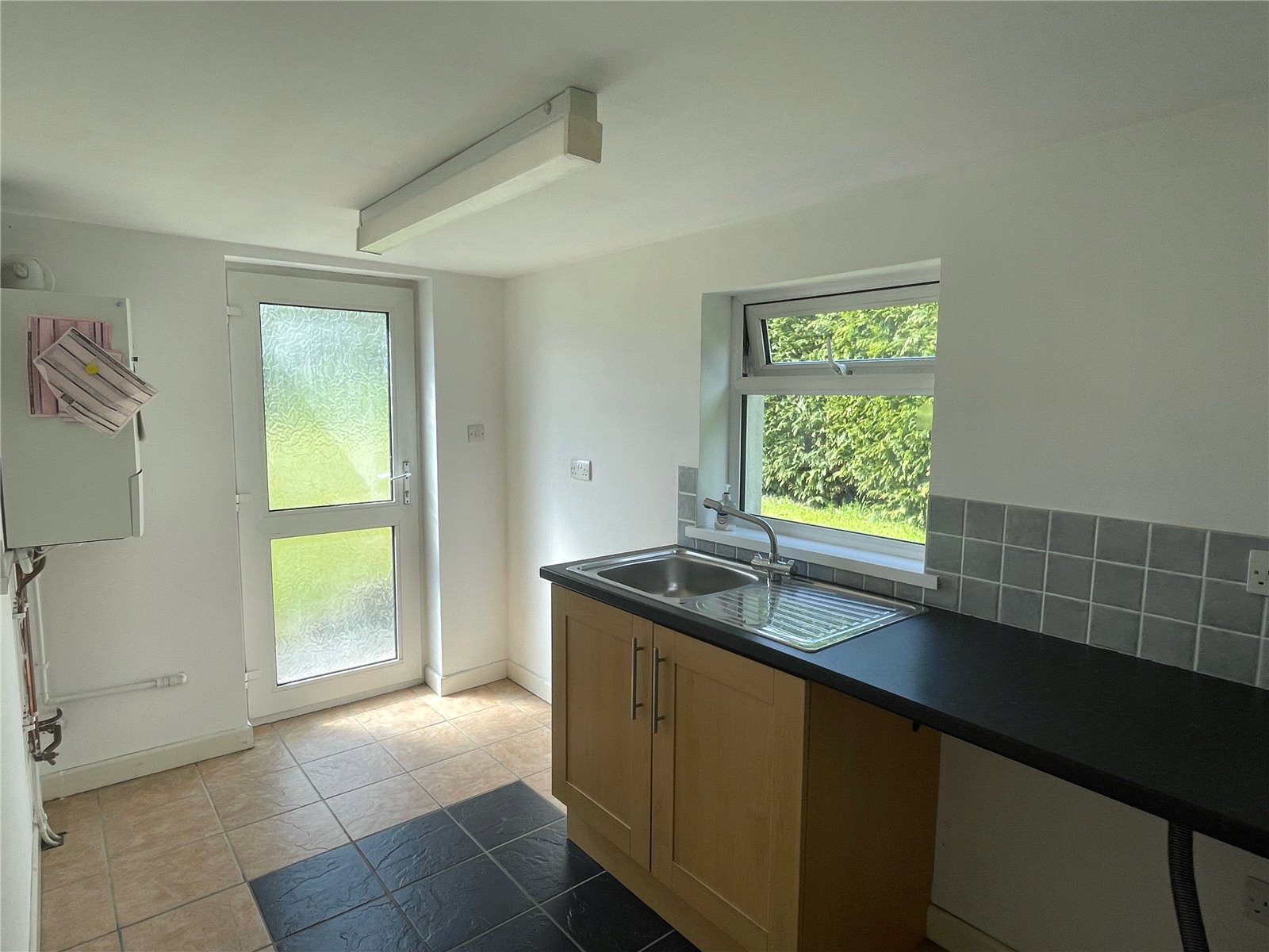 Tiled floor, base unit with work top along the wall, sink and drainer with mixer tap, uPVC double glazed window, ceiling light, uPVC double glazed door with obscure glass leading to garden.