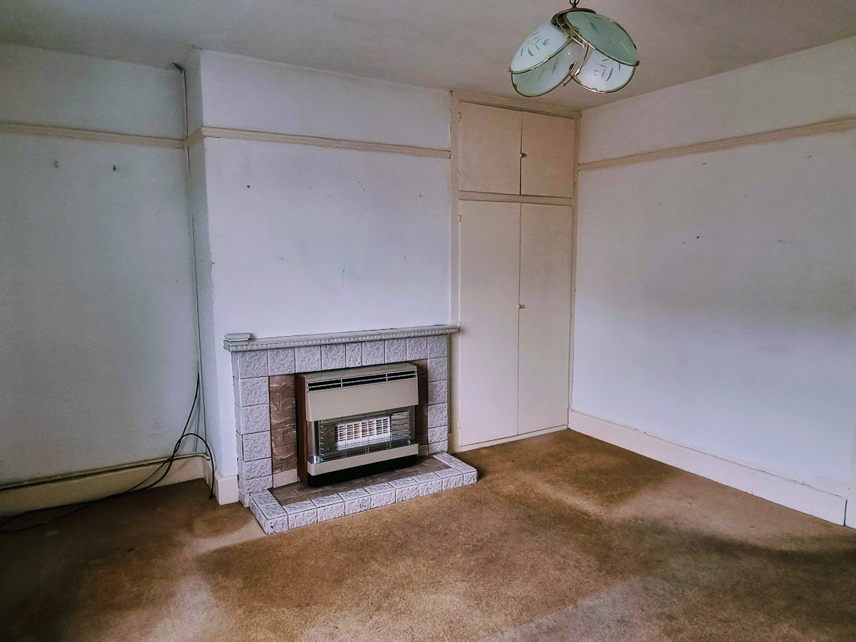 Carpeted floor, radiator, uPVC single glazed window to front, gas fire, built in storage,ceiling light, to: