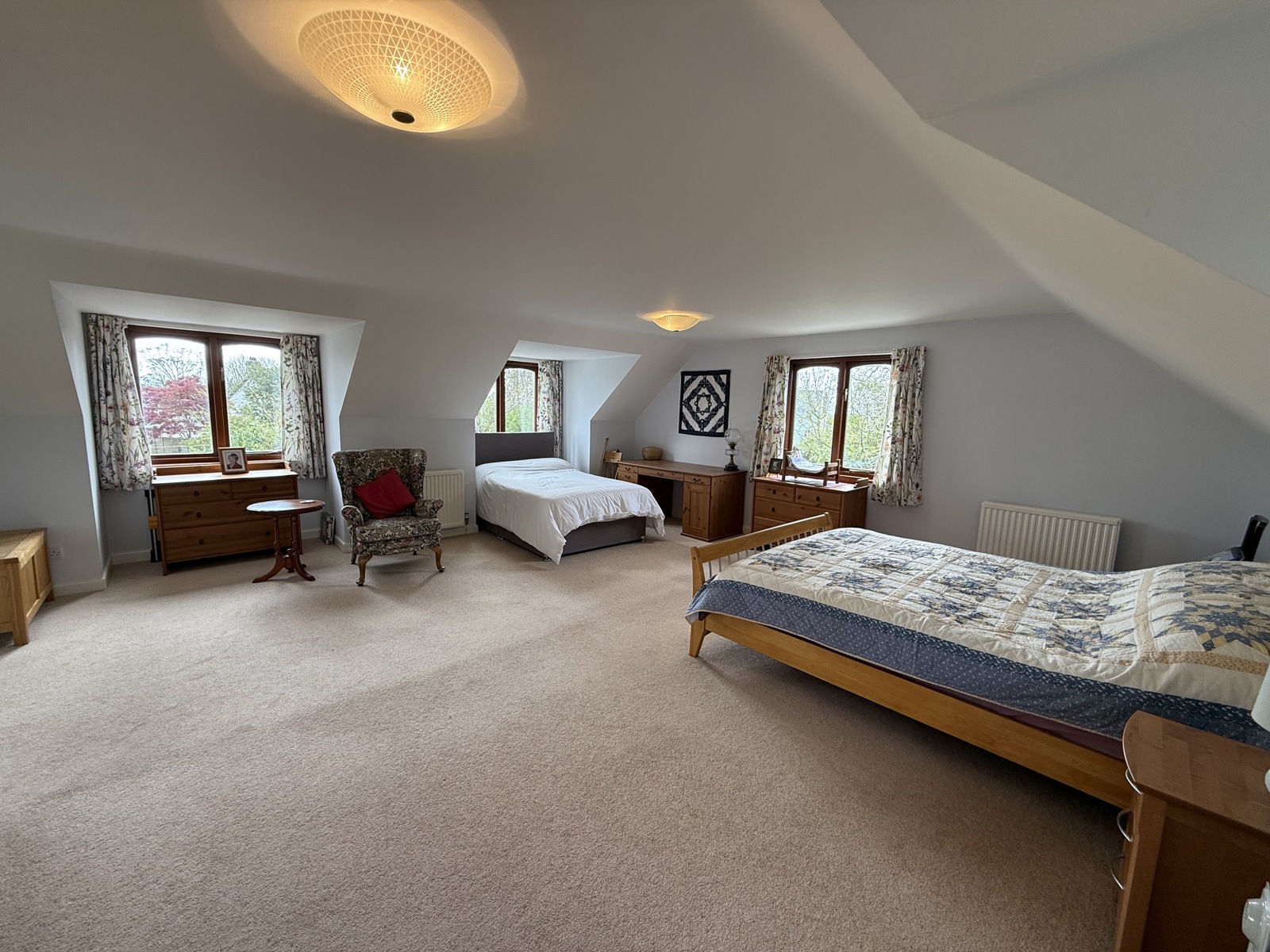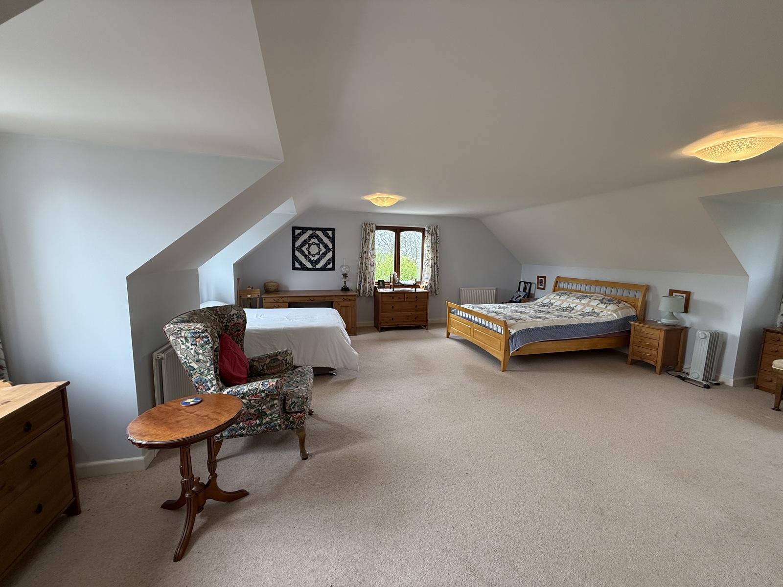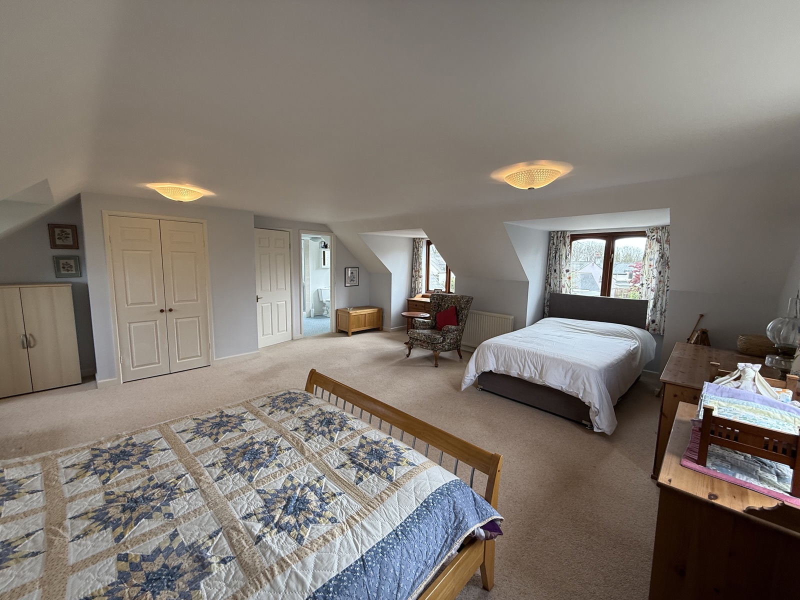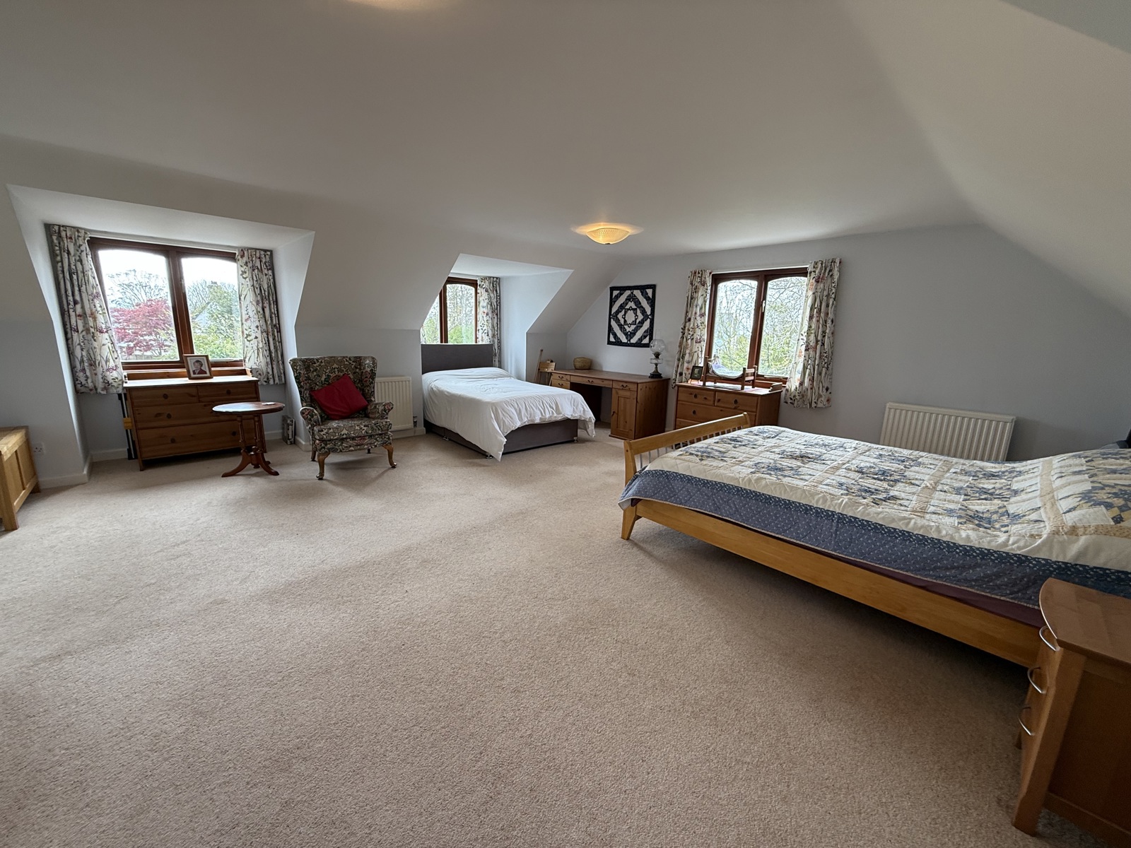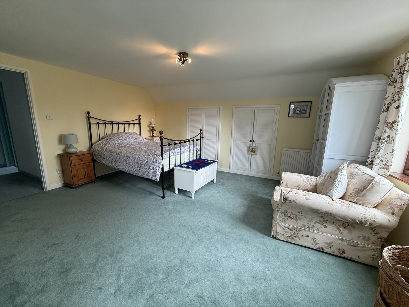 This sizeable master suite benefits from two double glazed windows to fore, double glazed window to rear and side, two radiators, double doors to built in wardorbe, door to: