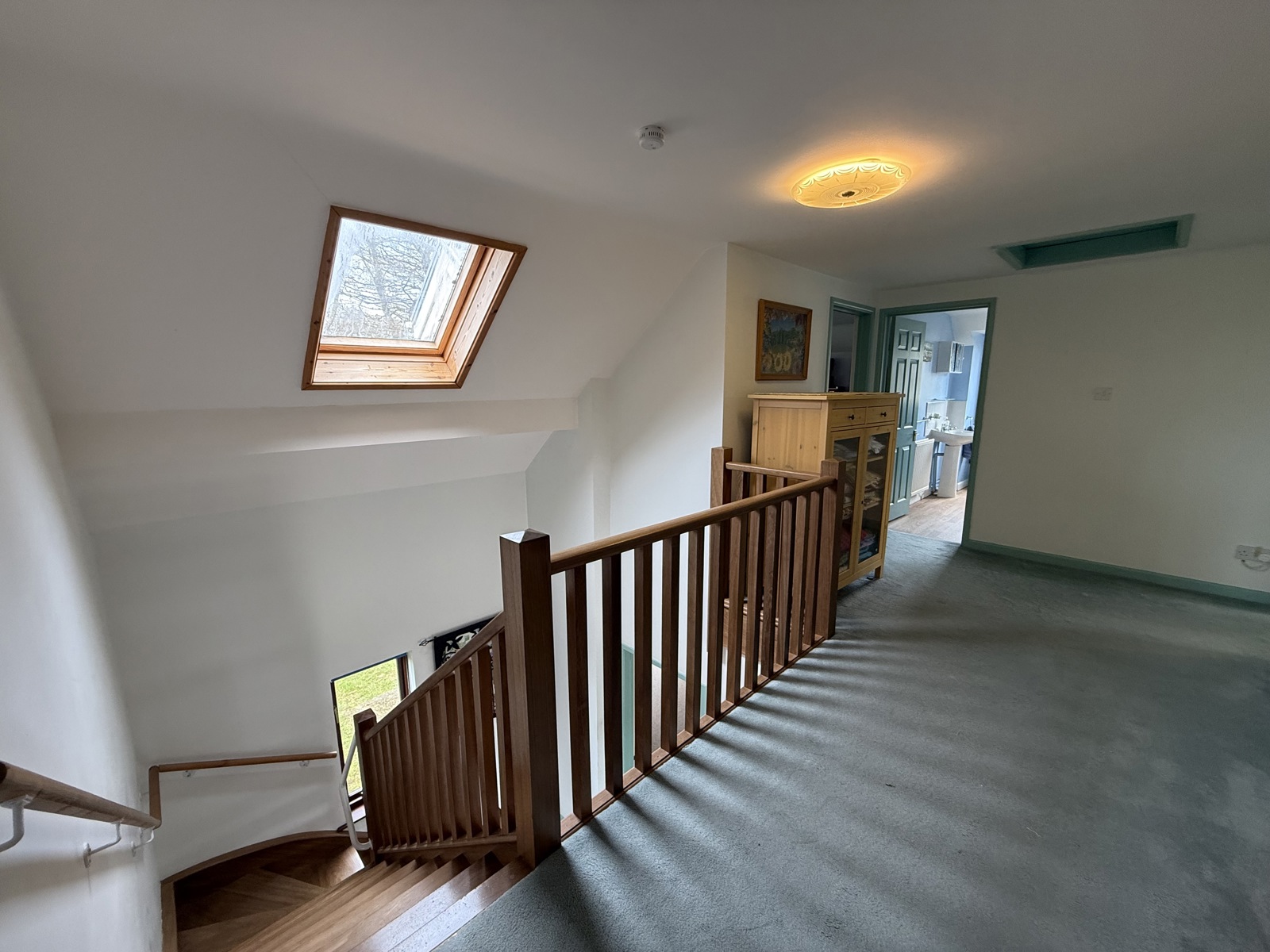Velux window to rear, attic entrance, radiator, built in cupboard, door to: