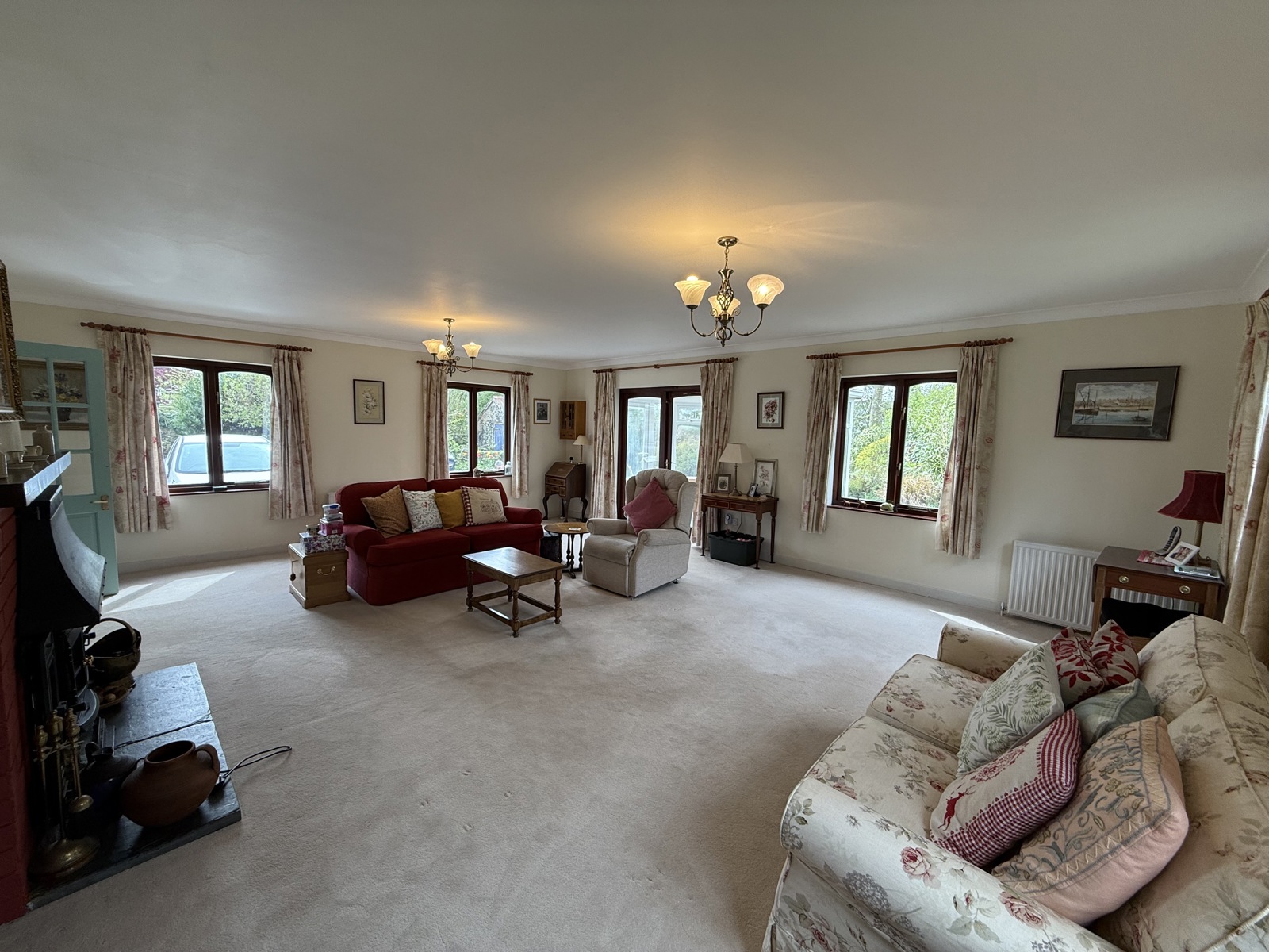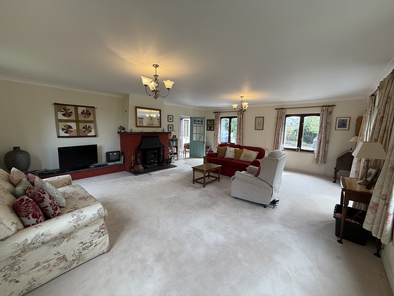 Two double glazed windows to rear, two double glazed windows to rear, double glazed window to side, two radiators, fireplace with brick surround and slate hearth with flu above with potential for log burning stove, TV point, coving to ceiling, double doors to: