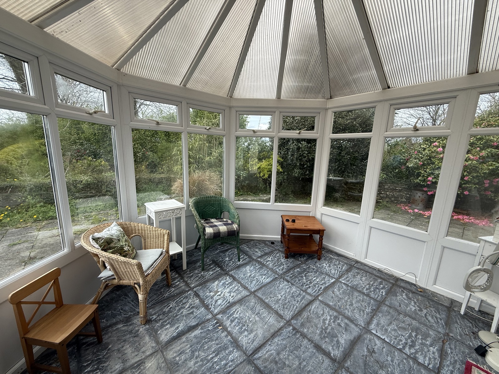 PVCu double glazed windows to rear and side, PVCu double glazed door to fore, tiled flooring, polycarbonate roof.