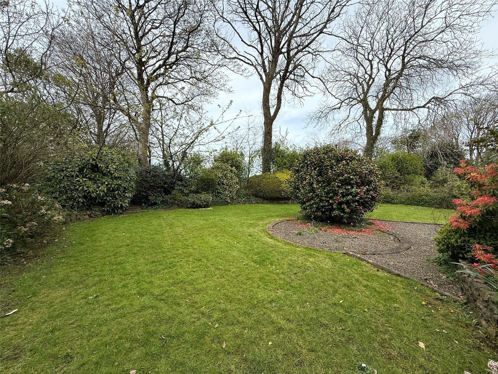 A wooden five bar gate leading to a large gravelled driveway with parking for numerous vehicle. There are paved patio areas surrounding the property. The rear garden is laid to lawn and has a garden shed with power connected, the extensive front garden is accessed through a stone arch onto a landscaped garden with various mature plants, trees and shrubs, gravel features, lawns and raised flower beds, there is also a block built shed.