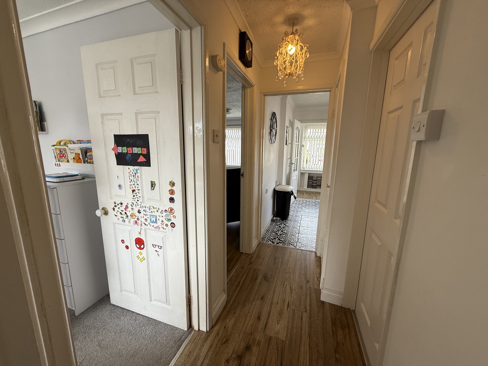Wood flooring, uPVC front door, uPVC double glazed window to the side