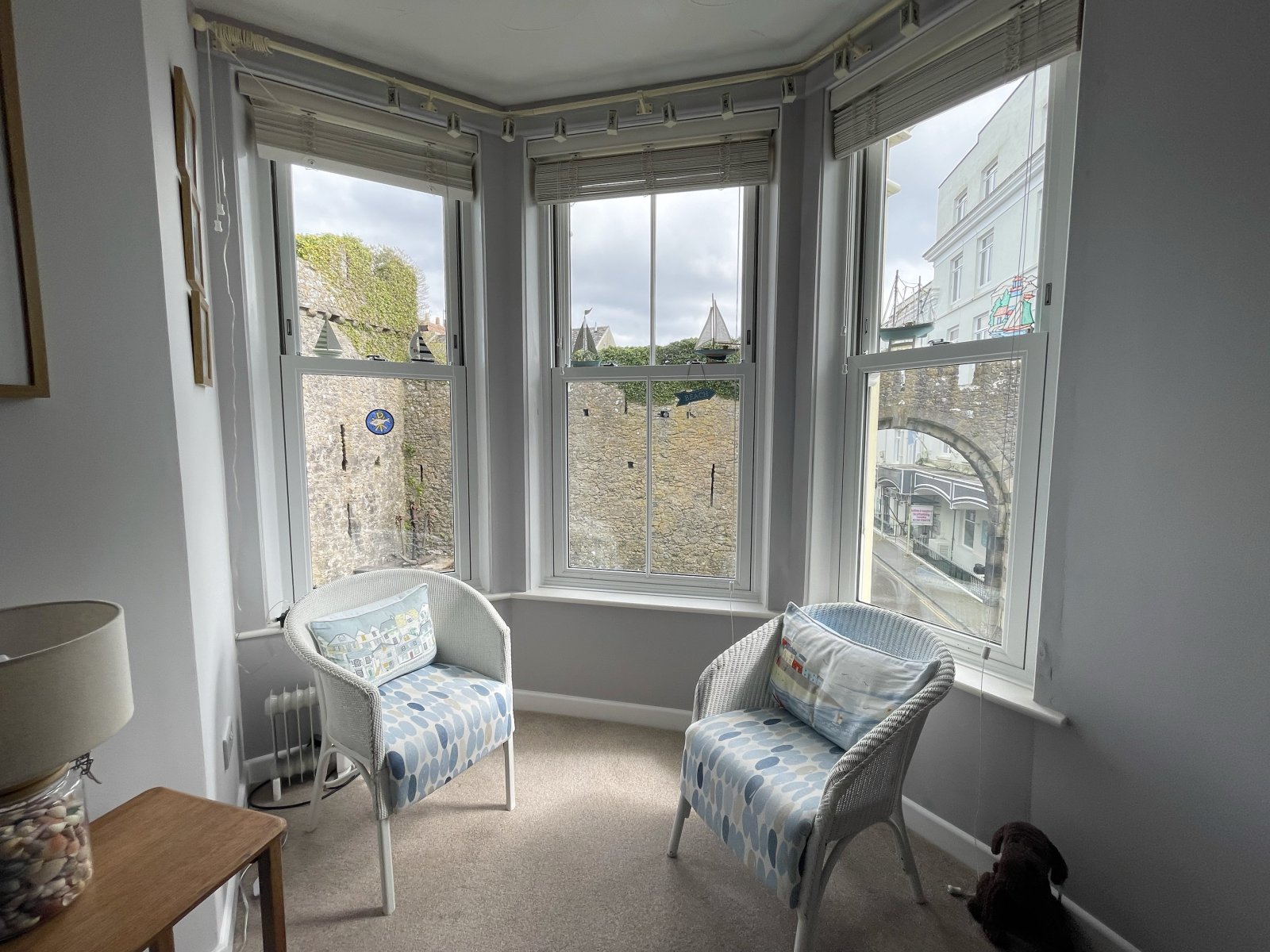 fbm Tenby are pleased to welcome Flat 3, Spetchley to the open market. The property has been kept immaculately by the current vendors and benefits from a sea view and rear balcony overlooking the shared rear courtard. Flat 3 is ideally suited to both first time buyers and second home owners alike. The bay window in the living room offers the view over the sea, a perfect place to relax after a day on the beach. Both of the bedrooms are doubles and benefit from fitted wardrobes offering practicality and space. The kitchen is a large enough space for a dining table and offers access to the purpose built fire exit.