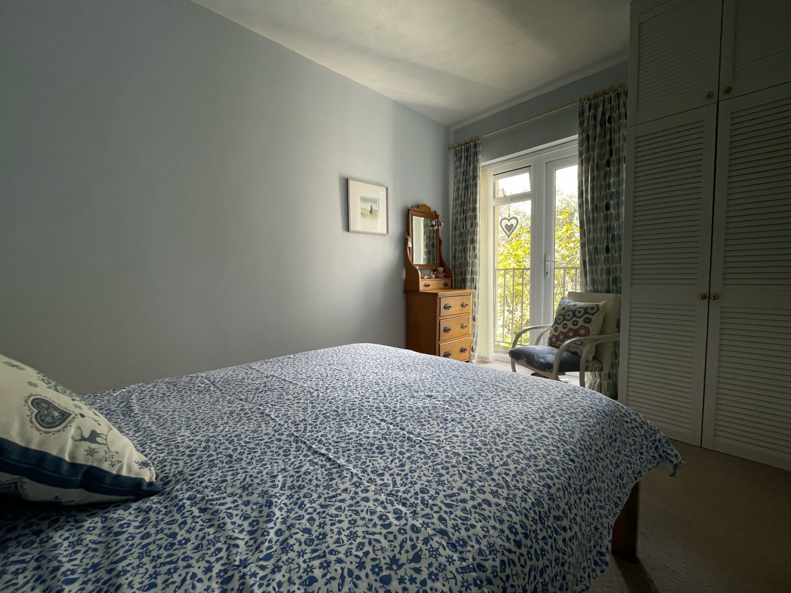 Carpet flooring, fitted wardrobe, radiator, double glazed uPVC doors to rear balcony.