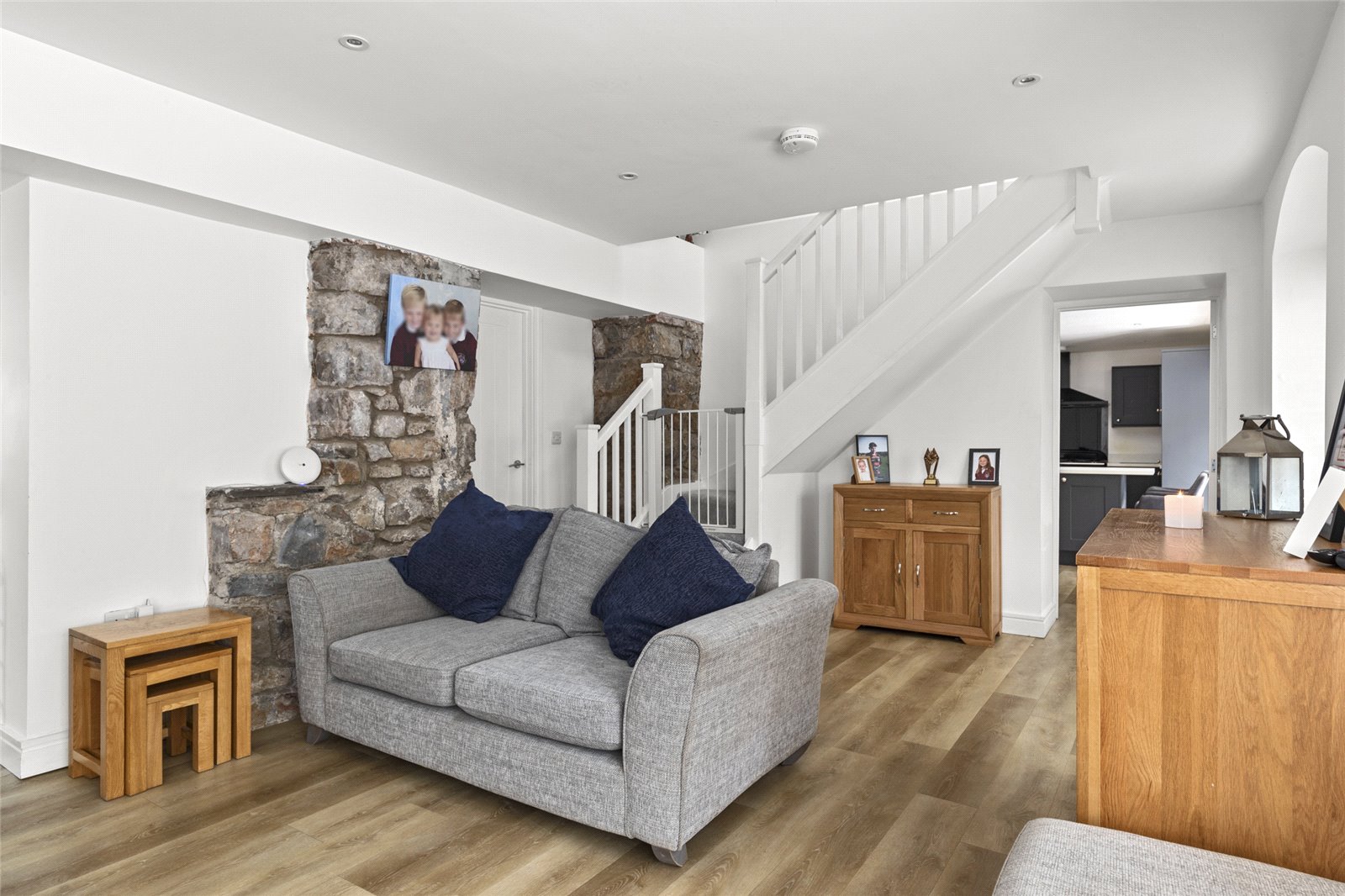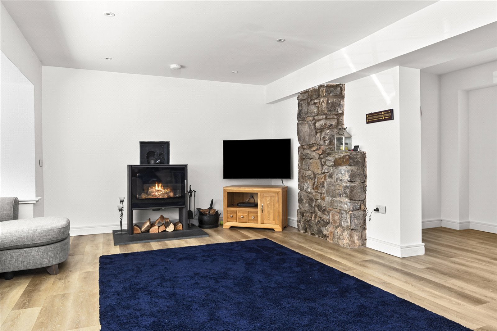 LVT flooring, log burner with slate hearth, large double glazed uPVC window to fore and rear, two radiators, stairs to first floor.