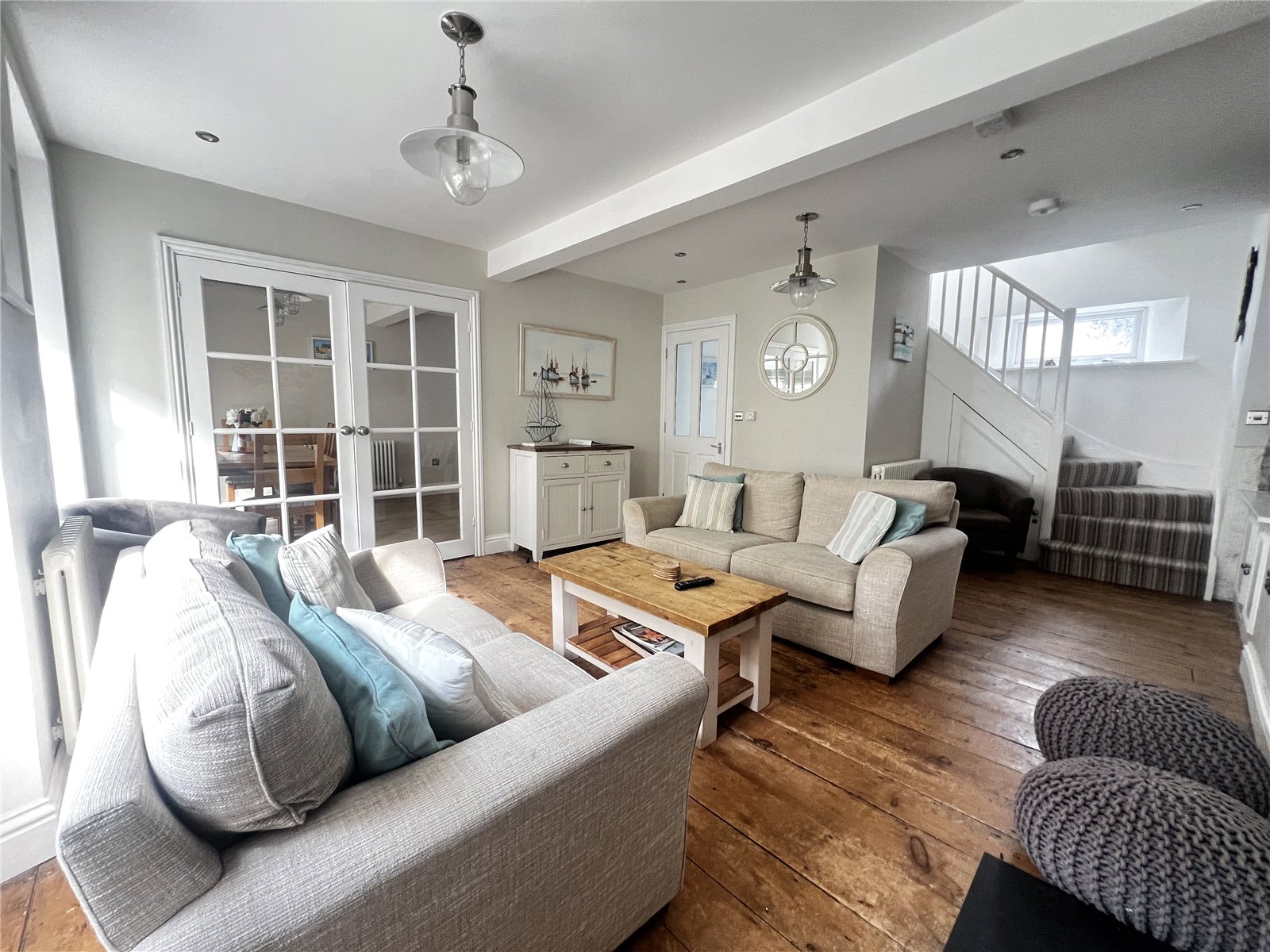 Double Window Aspect Living Room with Original Wooden Floors and Brickwork