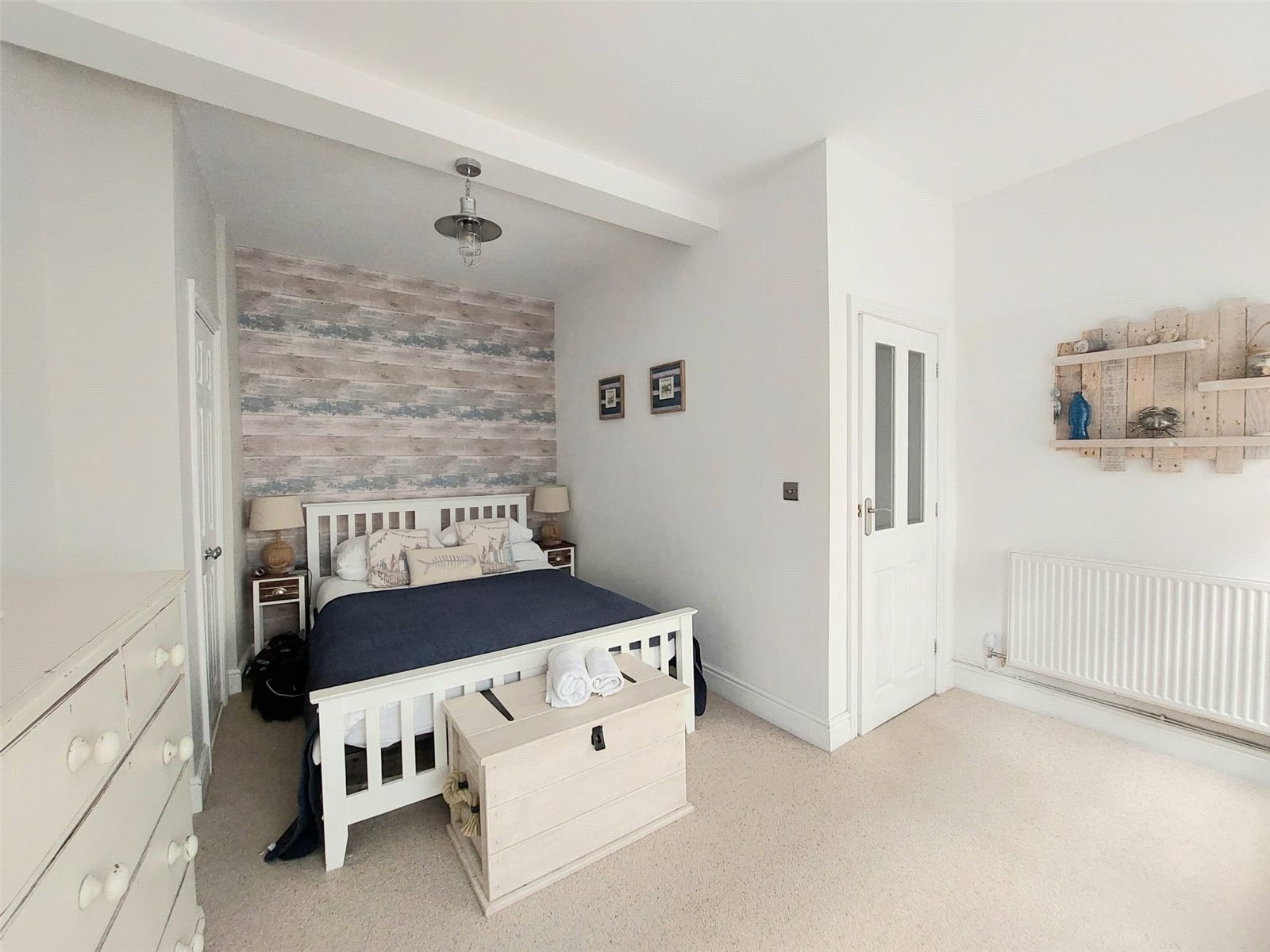 Large Double Bedroom with Wooden Panelled Wall Feature