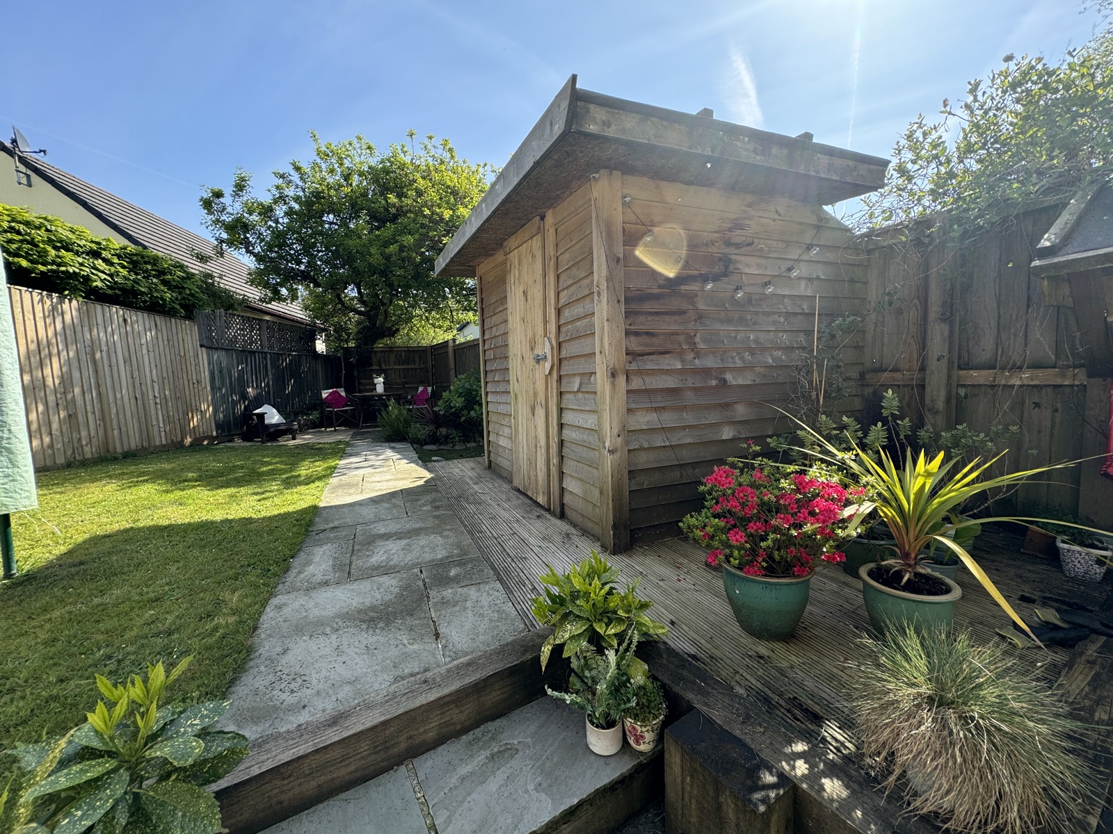 Externally, the property offers off-road parking for two vehicles and a private, enclosed rear garden with shed, mainly laid to lawn with a patio seating area — perfect for summer dining or relaxing in the sun.