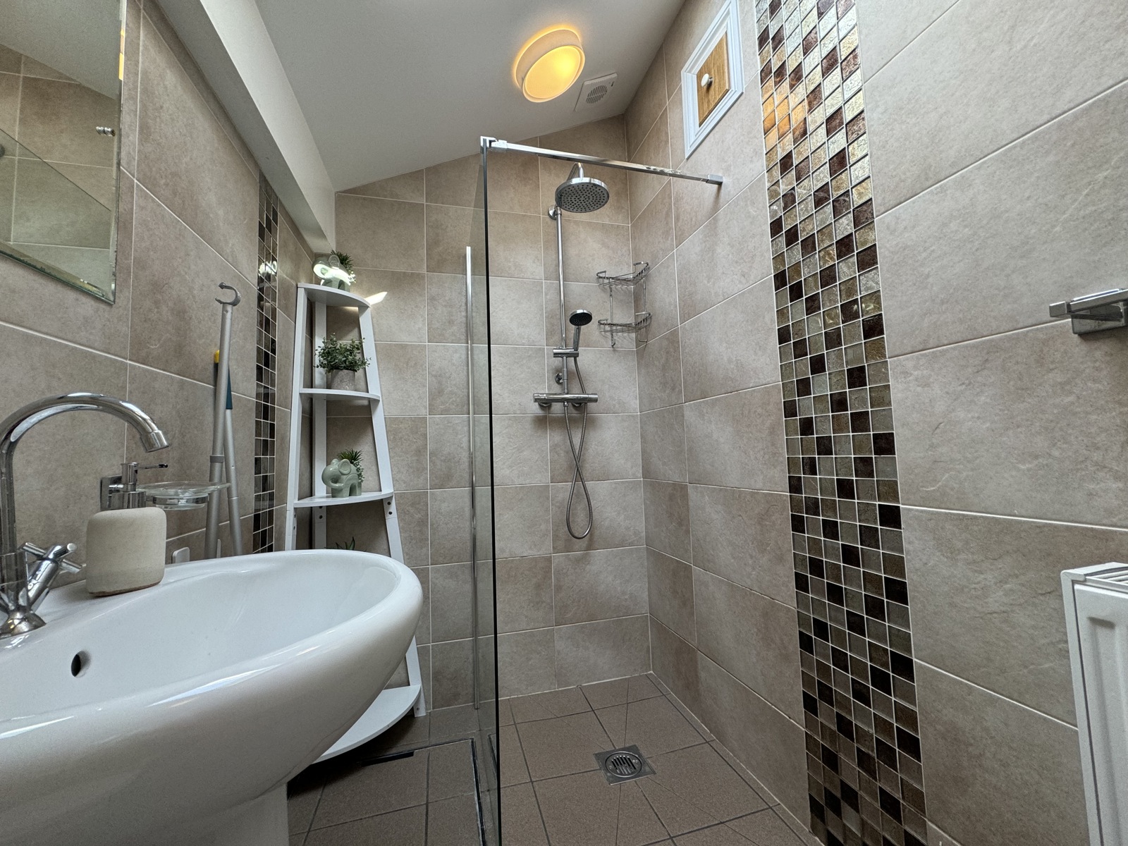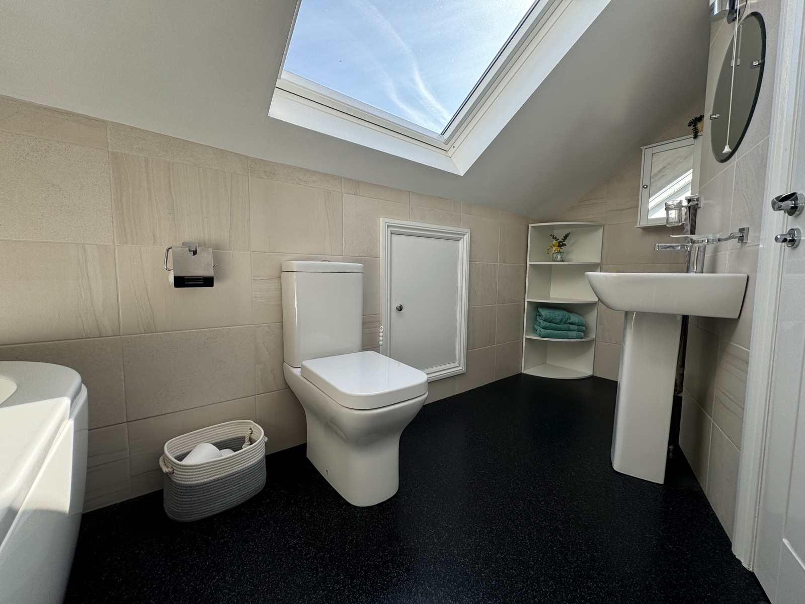 Tiled Flooring, Tiled Walls, Walk In Wet Room Style Power Shower, Velux Window, Wash Basin, WC, 1 x Radiator.