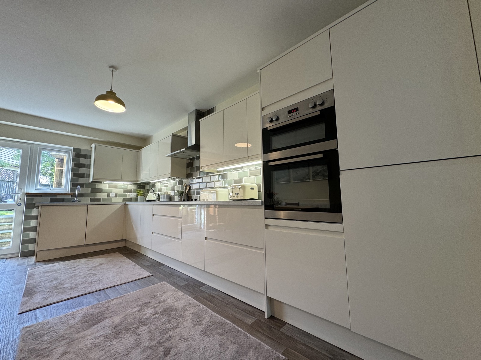 Vinyl Flooring, uPVC Double Glazed Door To Rear & Window To Rear, 1 x Radiator, Base & Eye Level Units, Sink With Mixer Tap, Integrated Double Oven, Induction Hob With Overhead Extractor Fan, Integrated Fridge Freezer, Integrated Dishwasher, Part Tiled Walls, Frosted Glass Door To Utility Room.